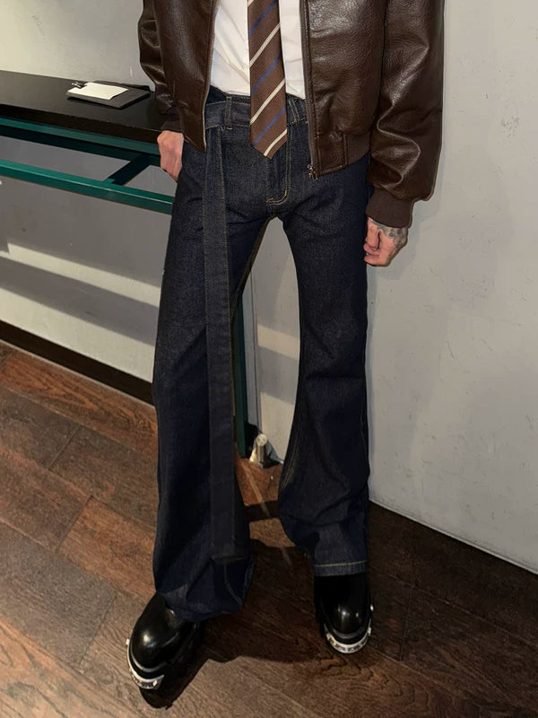 Pantalones de mezclilla acampanados ajustados con cinturón