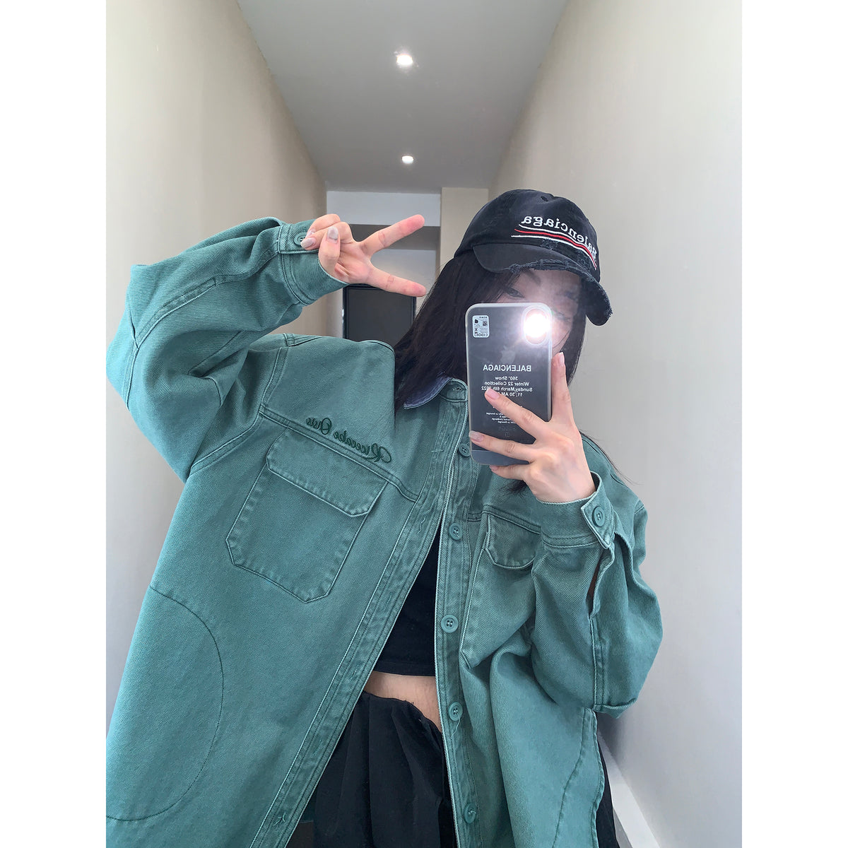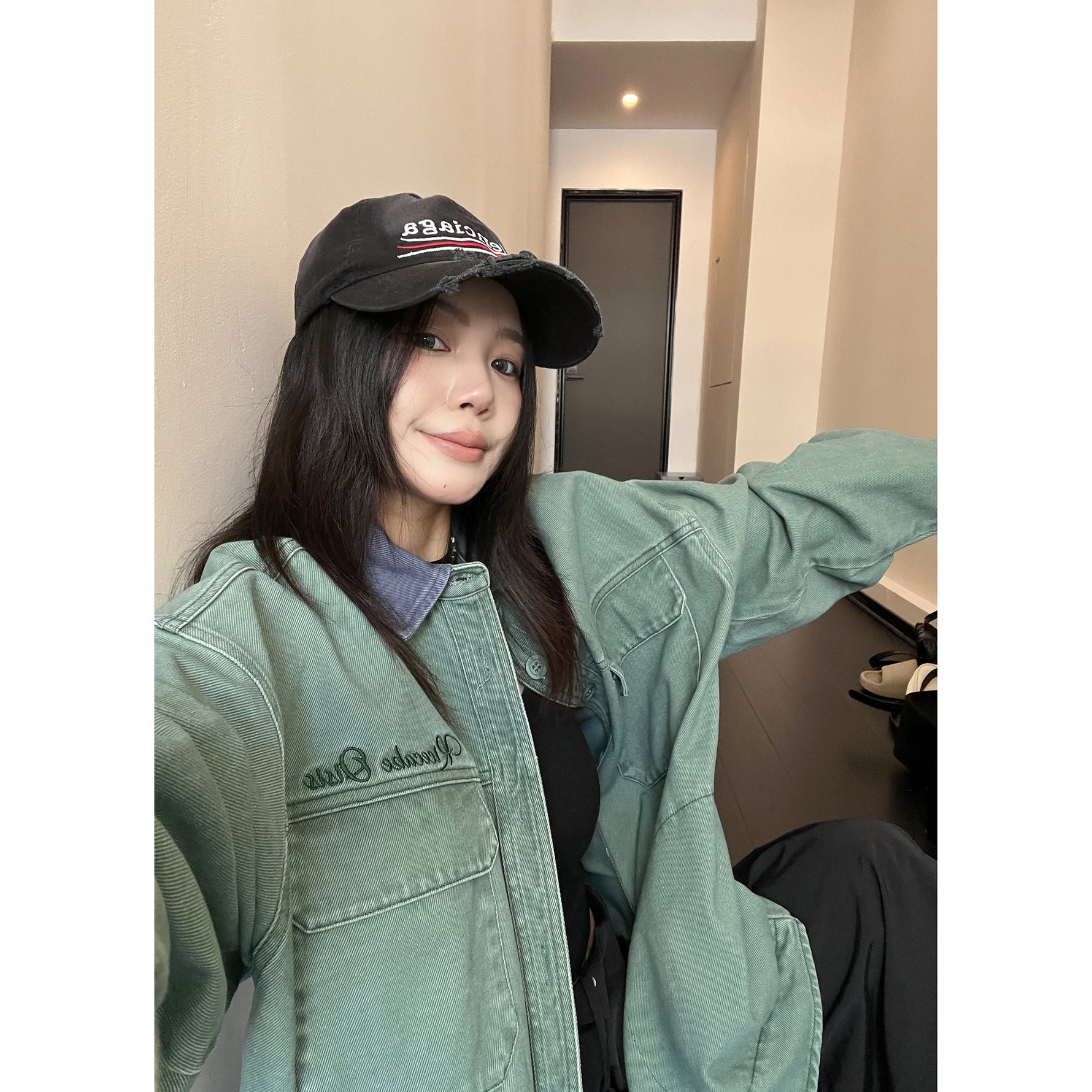 - Water-washed denim cotton