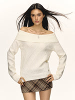 Off-Shoulder Long-Sleeve Knit Sweater