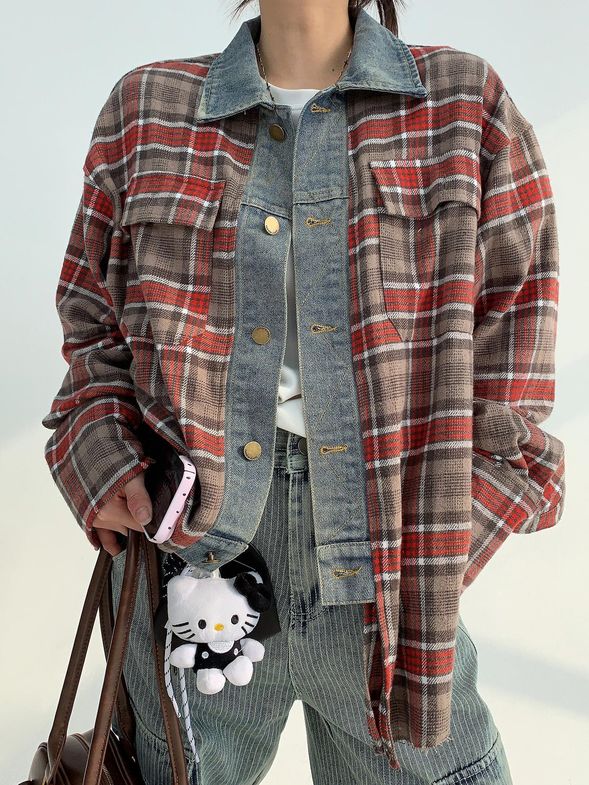Plaid Patchwork Long-Sleeved Shirt Jacket