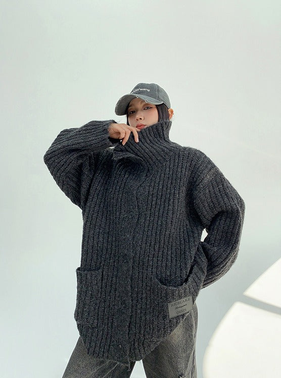 Chunky Knit Stand Collar Sweater