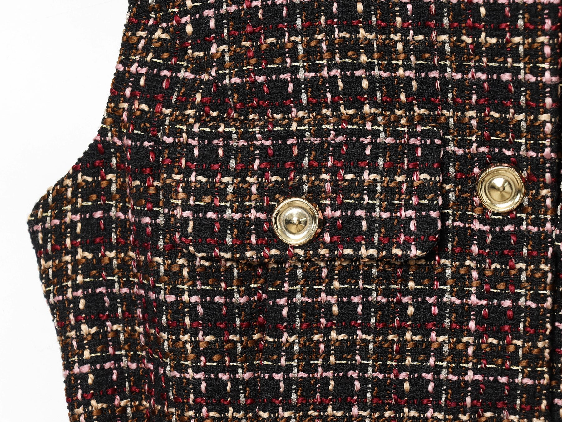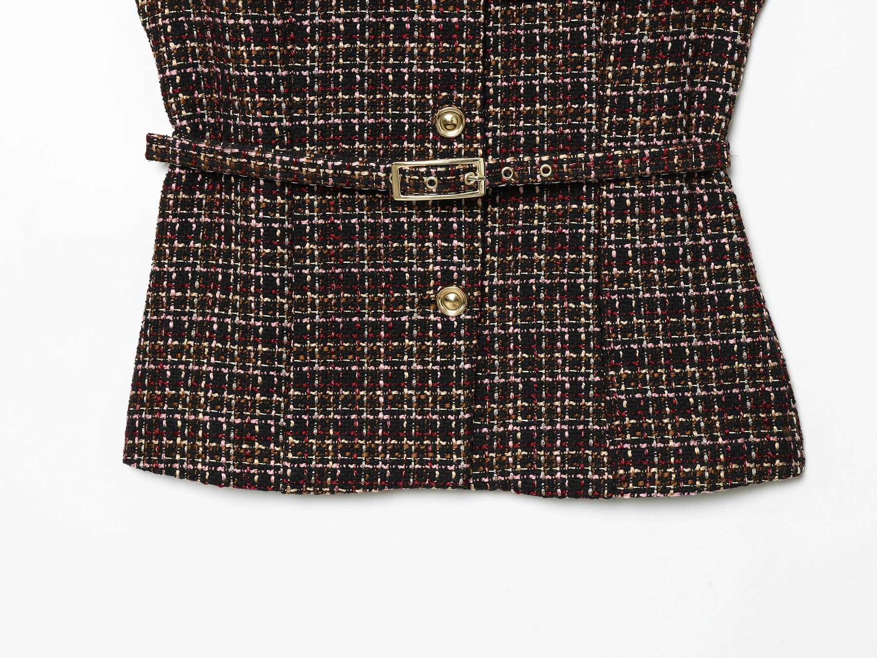 Chaleco de Tweed Texturizado con Decoración de Cinturón