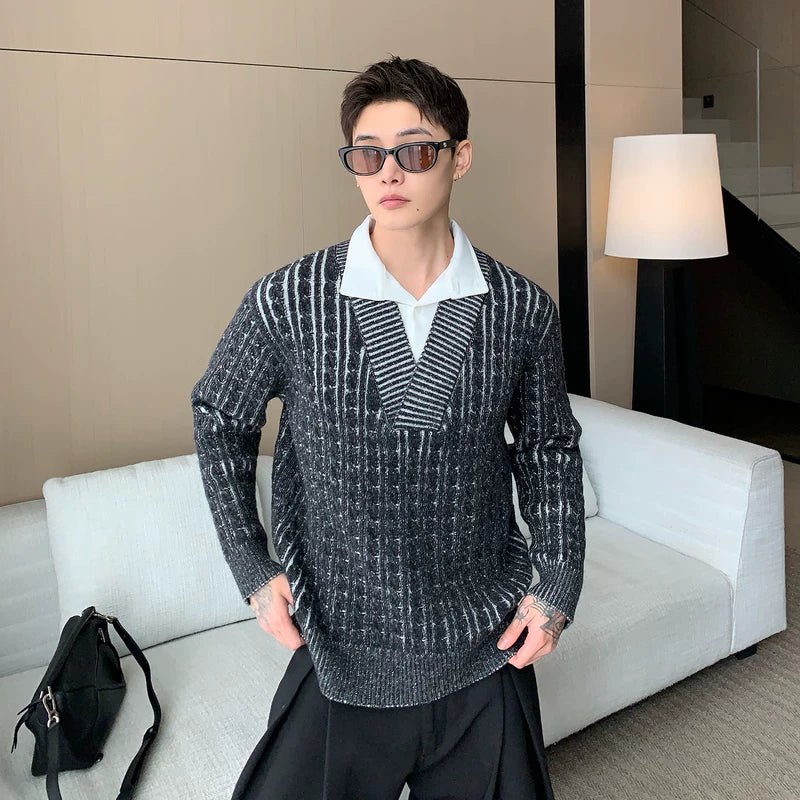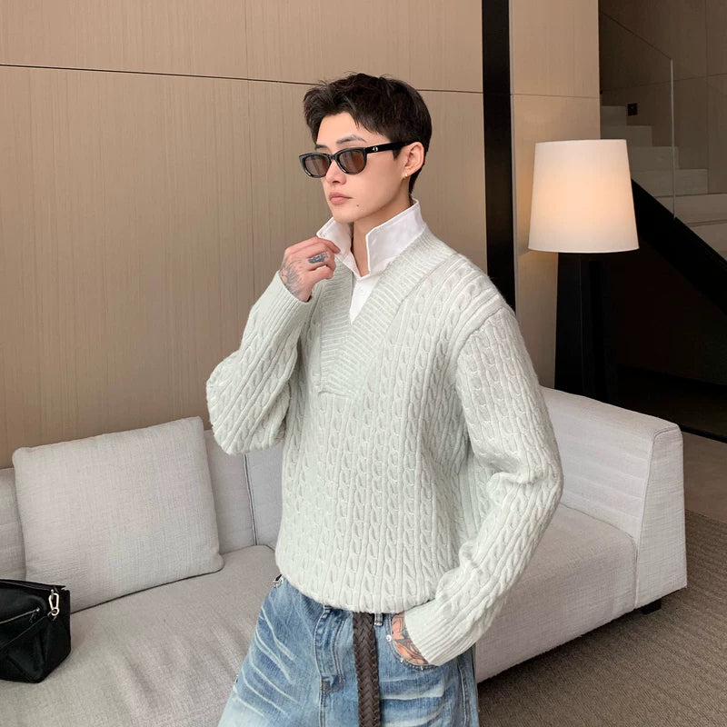 Suéter de dos piezas de imitación de punto trenzado 3D