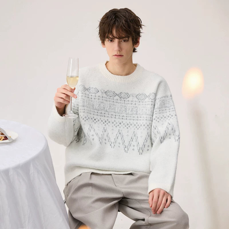- El patrón de tejido Fair Isle se extiende naturalmente a los hombros, con una estructura que asegura flexibilidad en los hombros y libertad de movimiento.