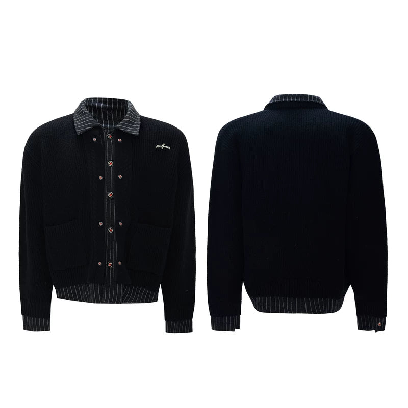 Faux Two-Piece Striped Knit Cardigan