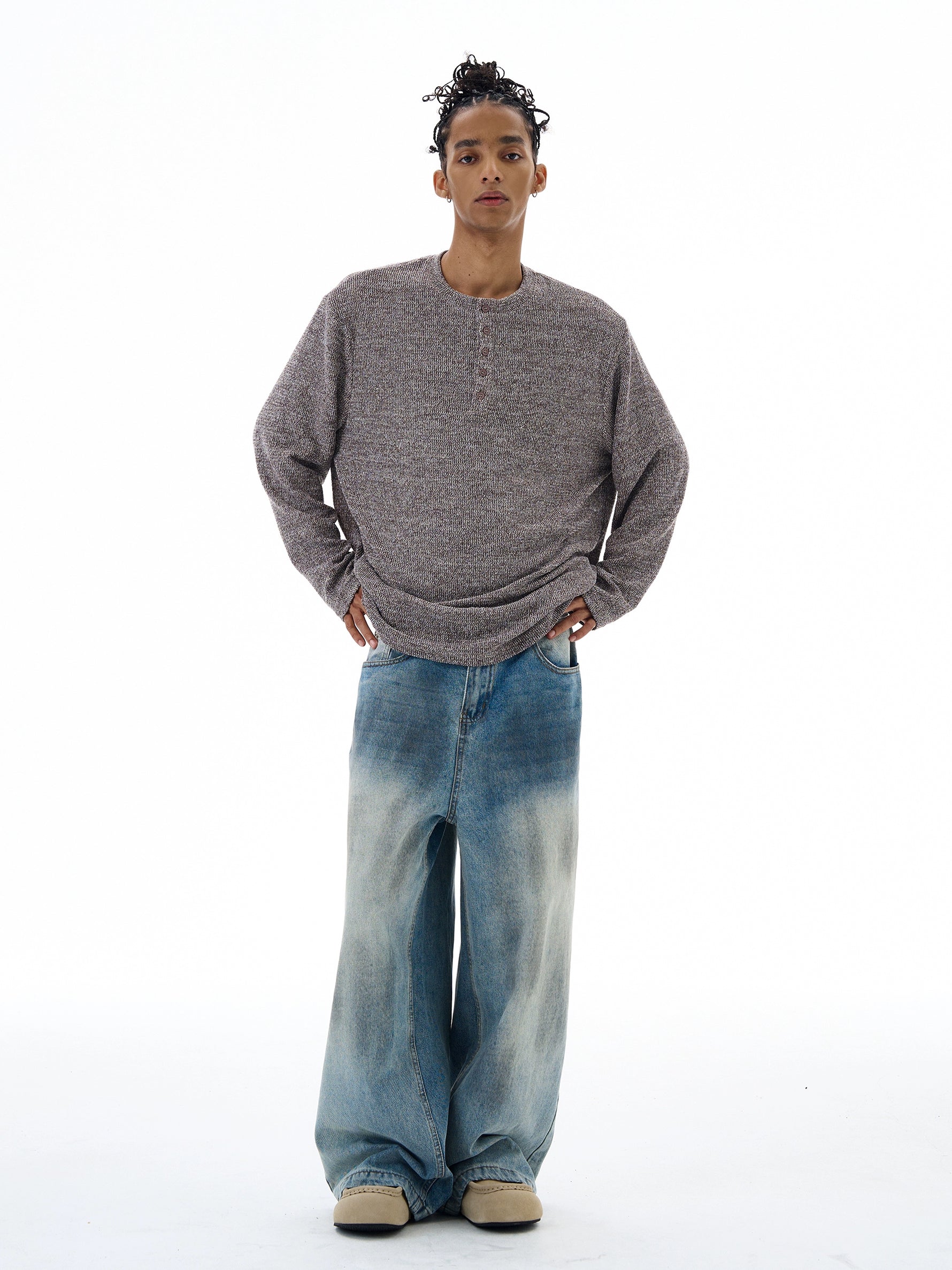 Suéter de manga larga tipo Henley de punto