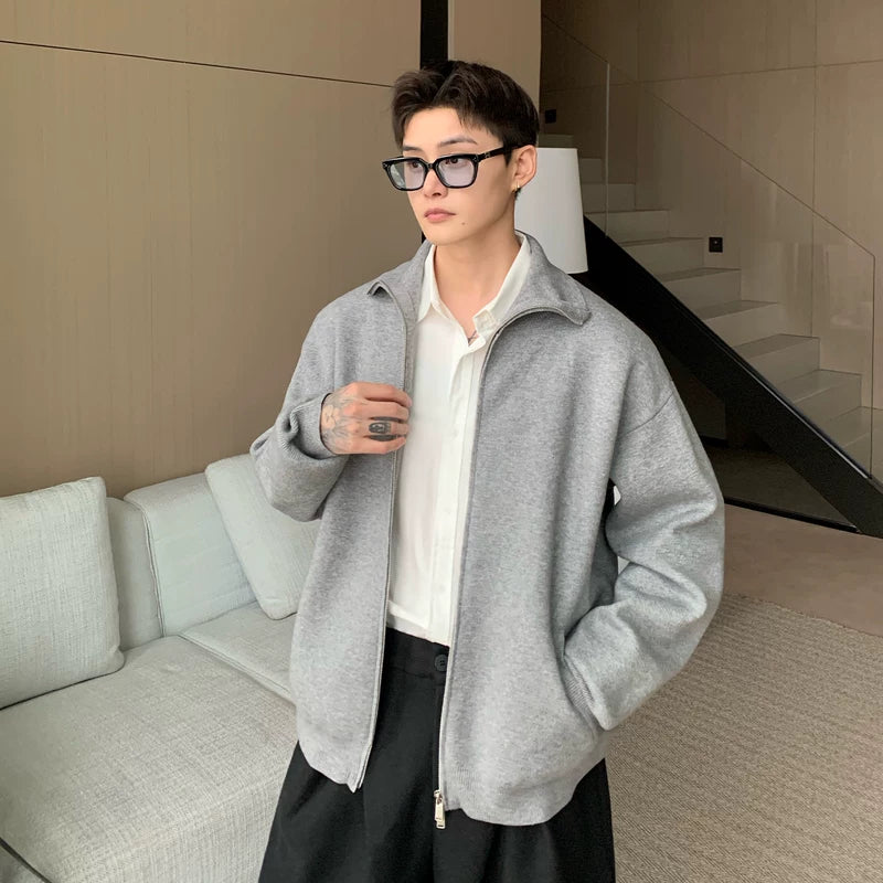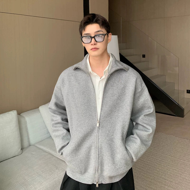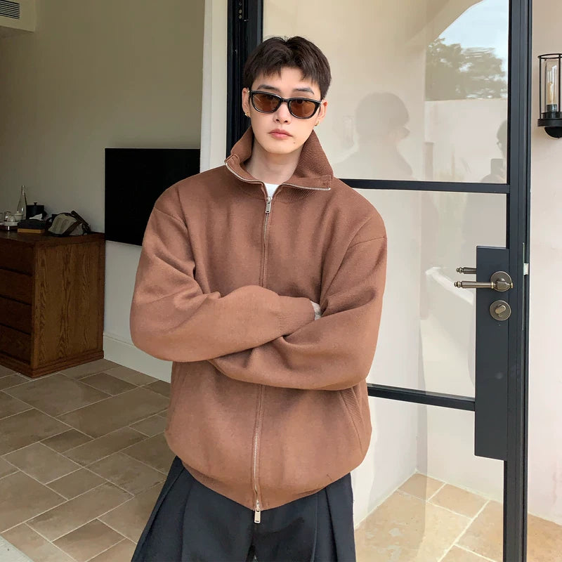 Suéter de cárdigan de punto con cremallera y cuello alto Modal