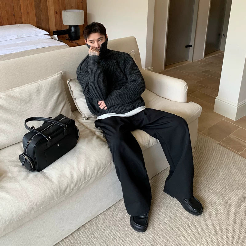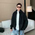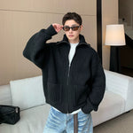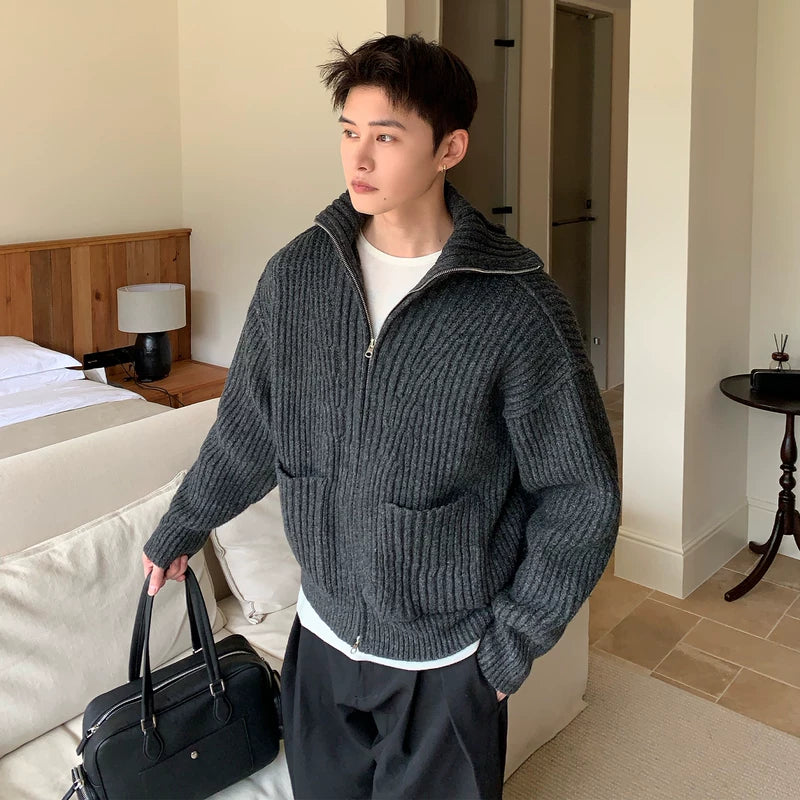 Cárdigan de suéter de punto acanalado retro de cuello alto