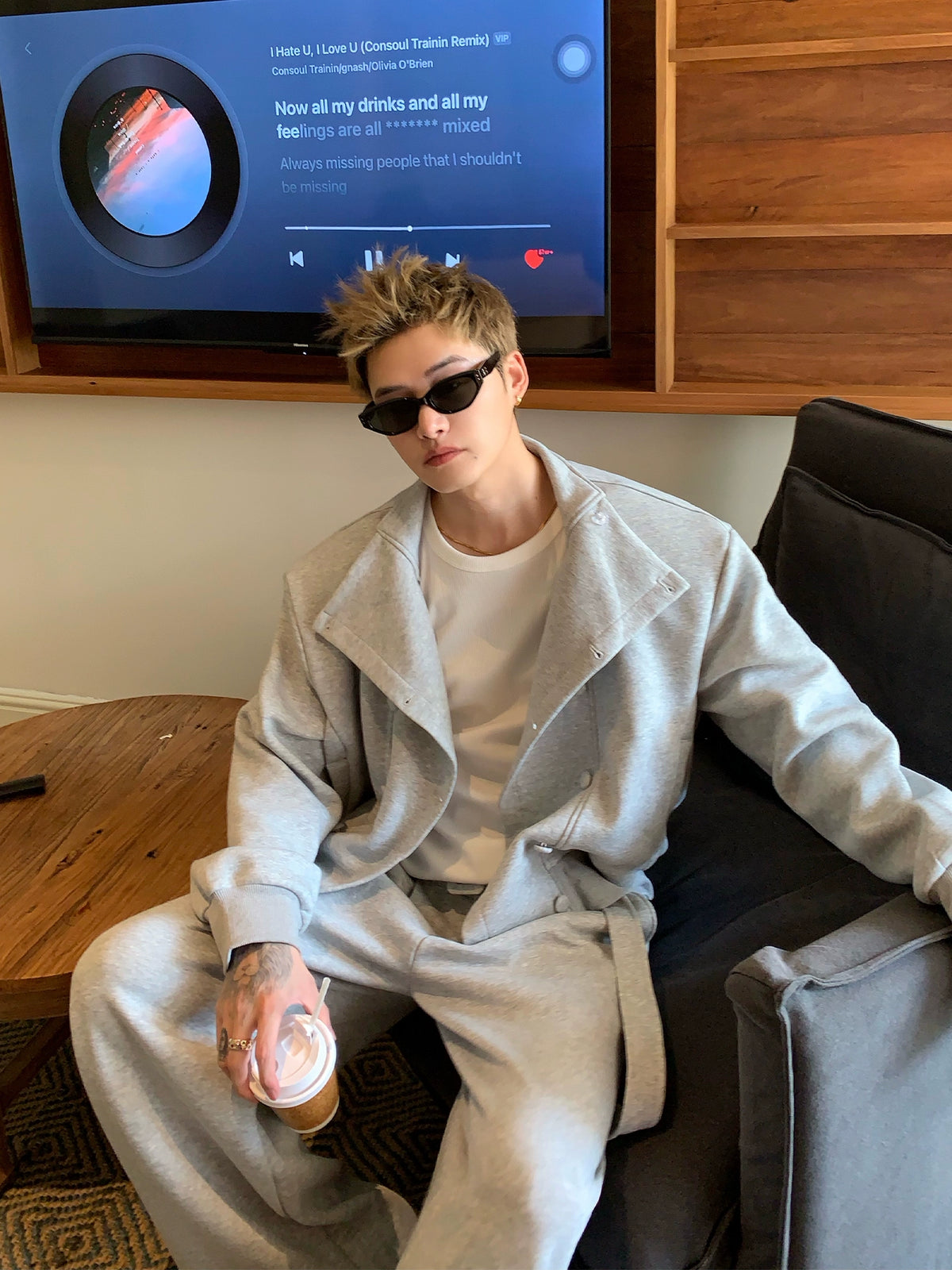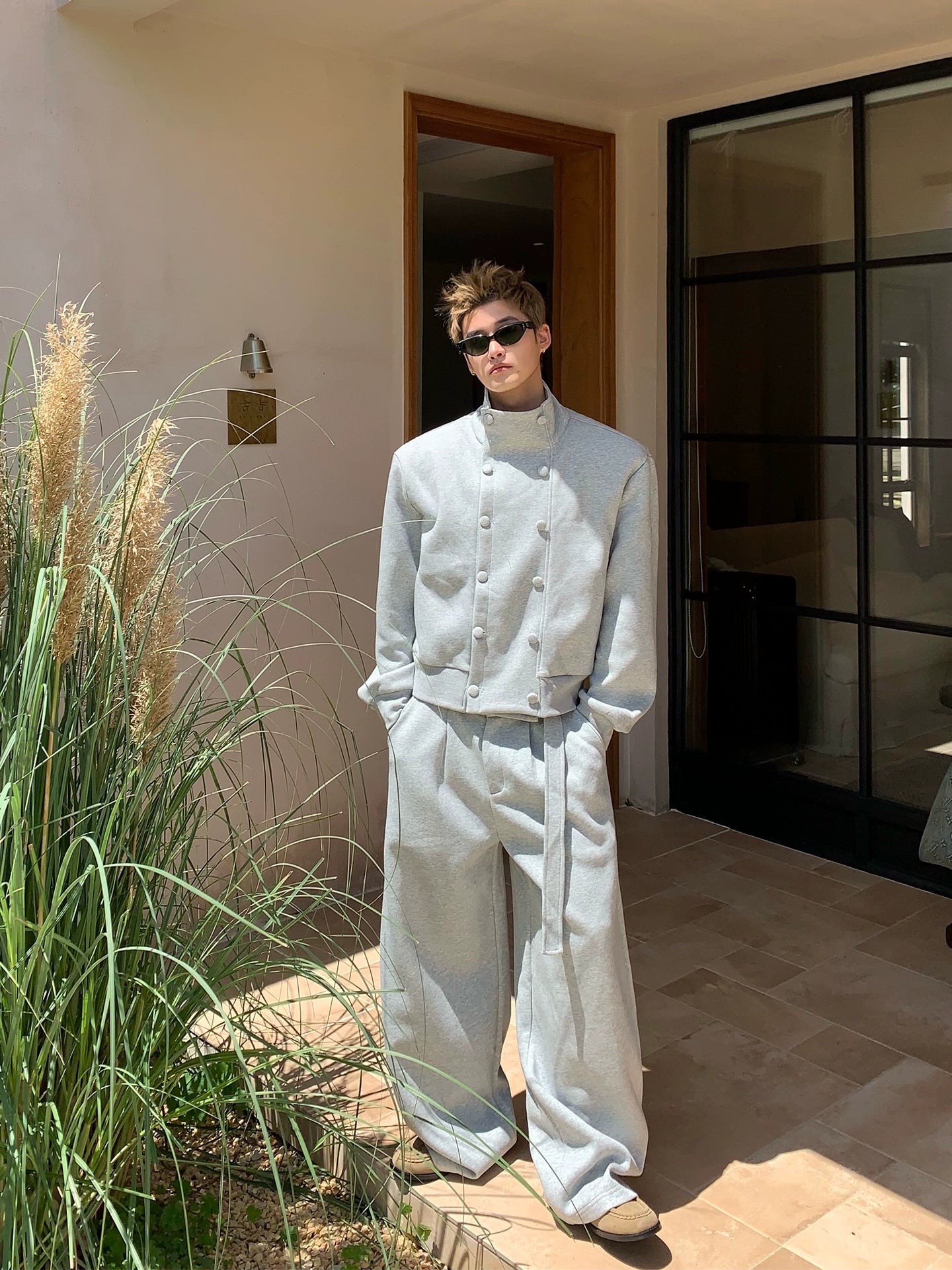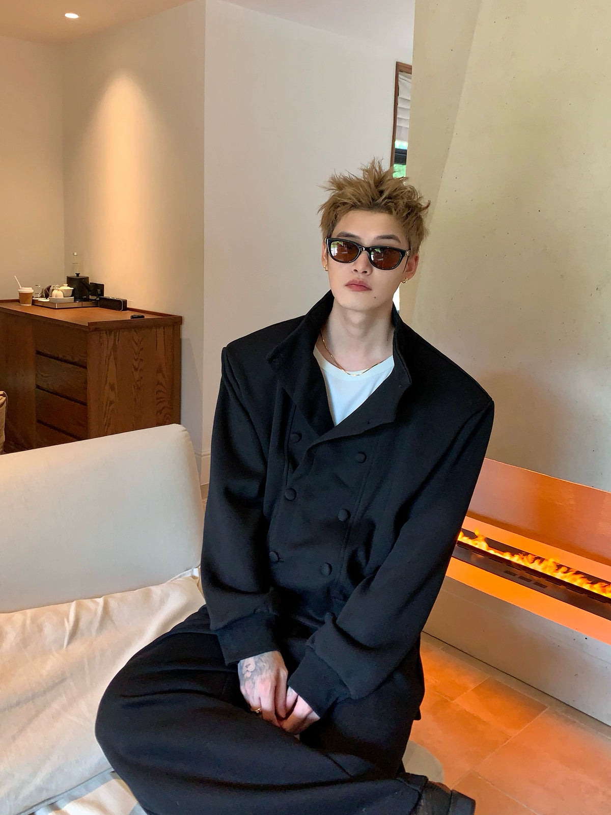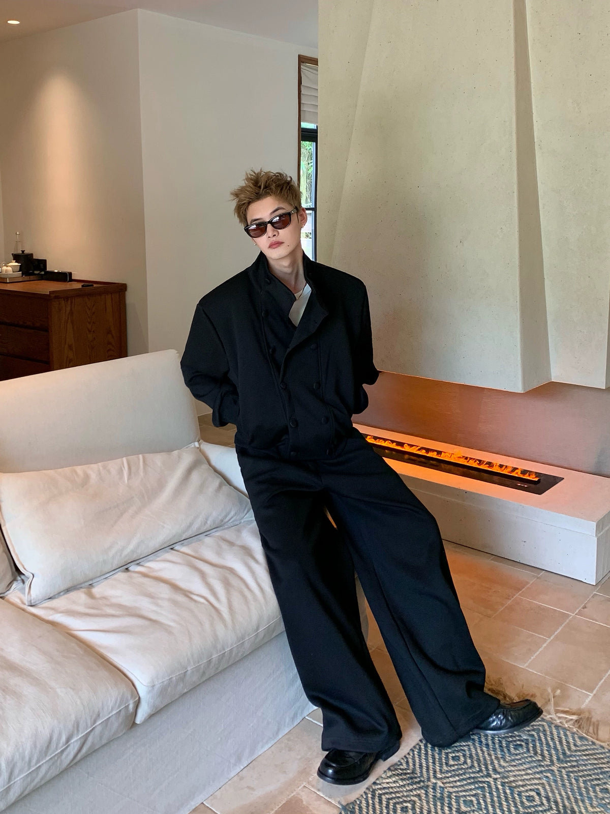 Conjunto de chaqueta de doble botonadura y pantalones holgados