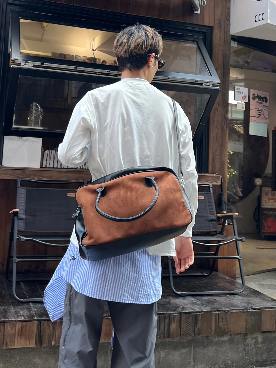 Bolso de hombro cruzado de motocicleta de ante retro