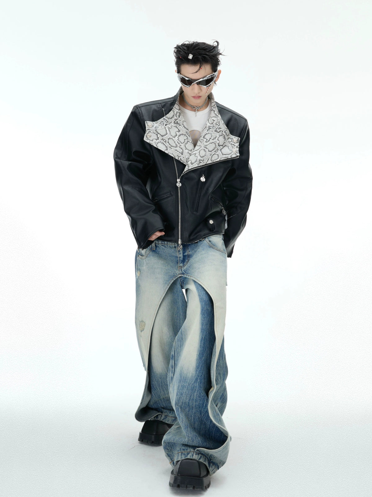 Chaqueta de motocicleta de cuero con patrón de serpiente