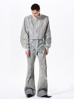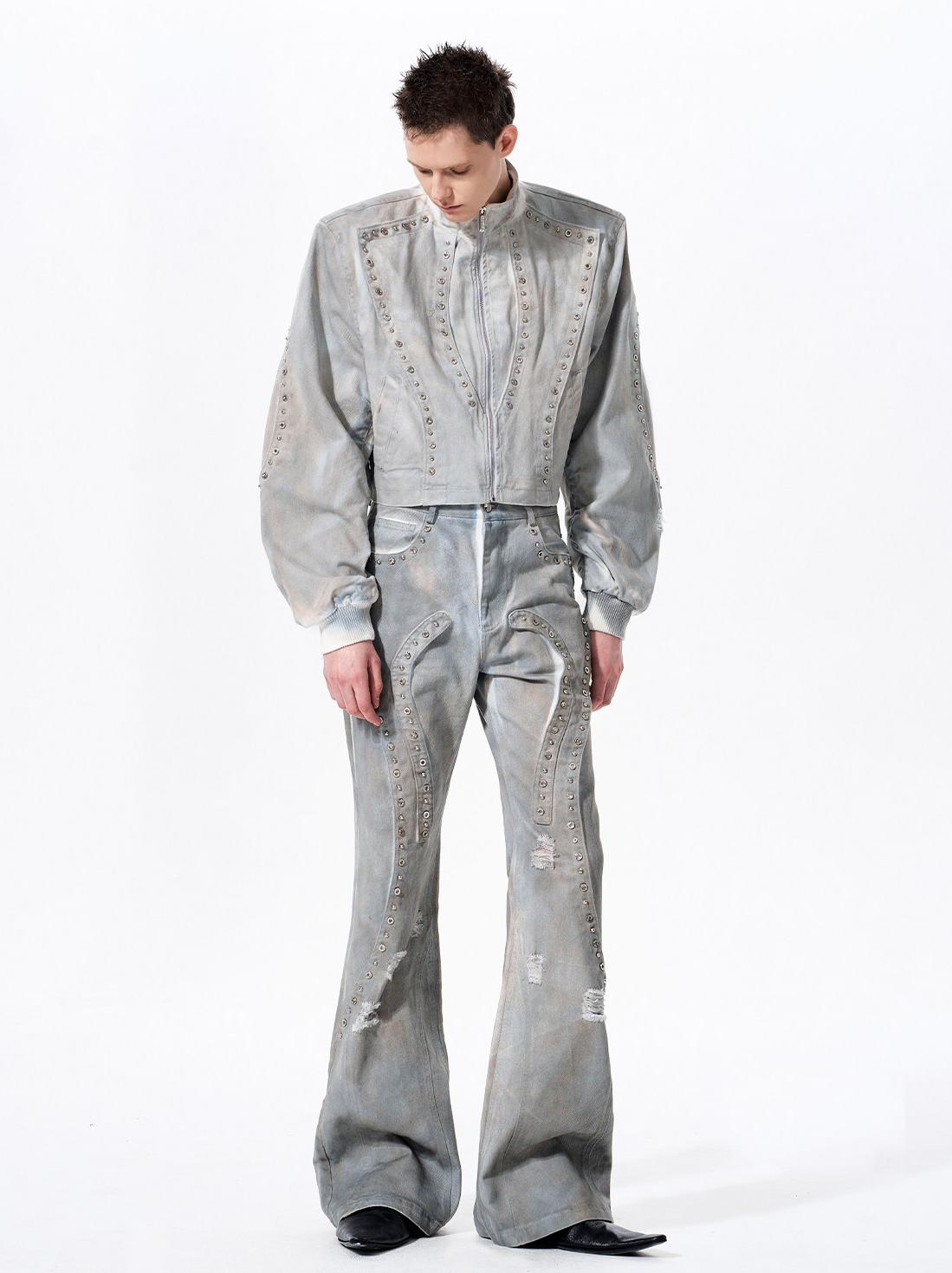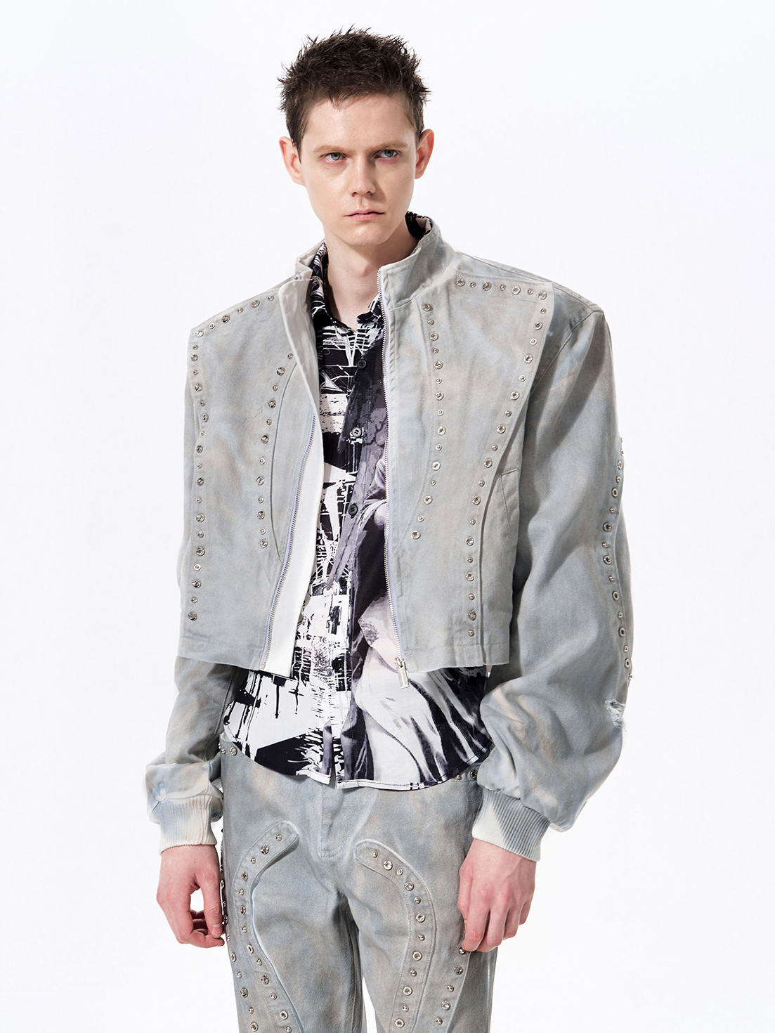 Chaqueta de mezclilla corta desgastada con tachuelas
