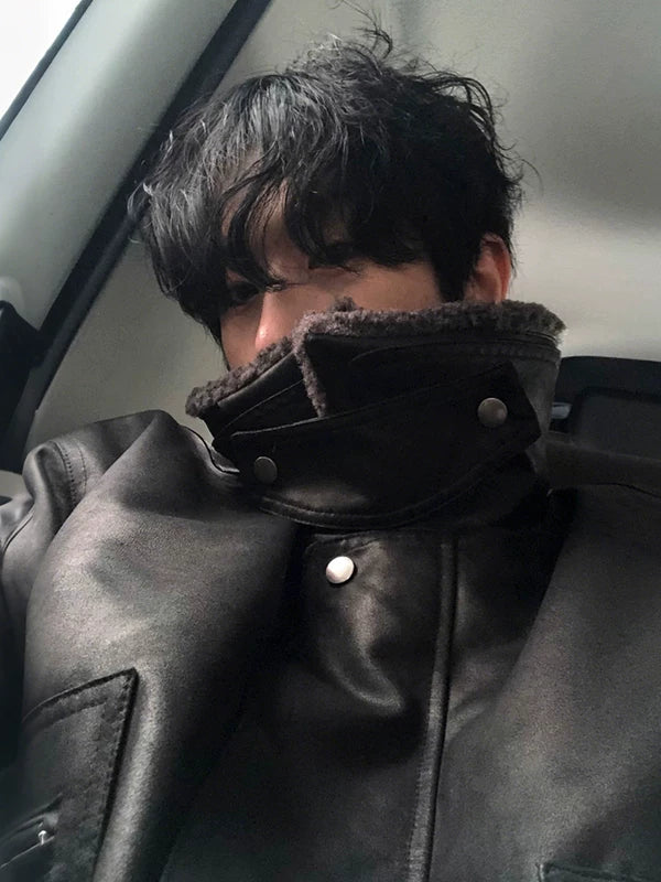 Veste d'hiver à col montant en simili cuir