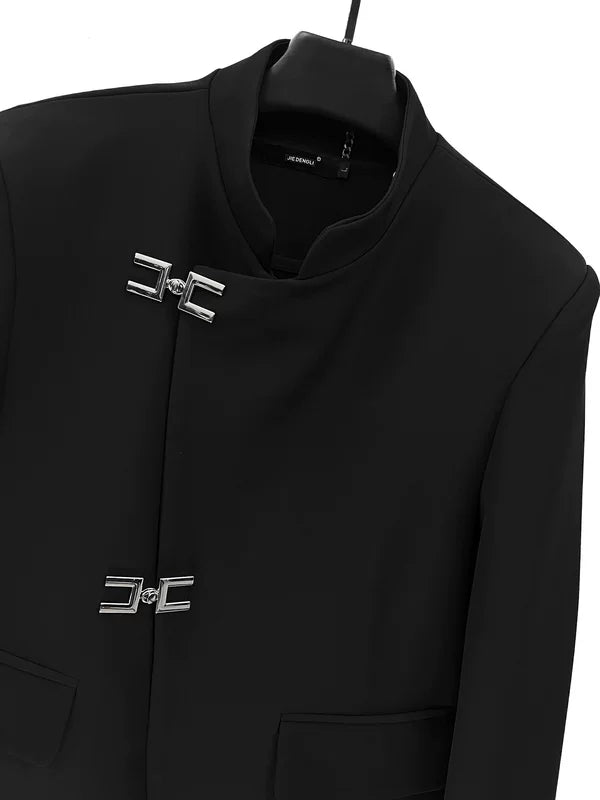 Veste à boucle en métal de style chinois à col montant