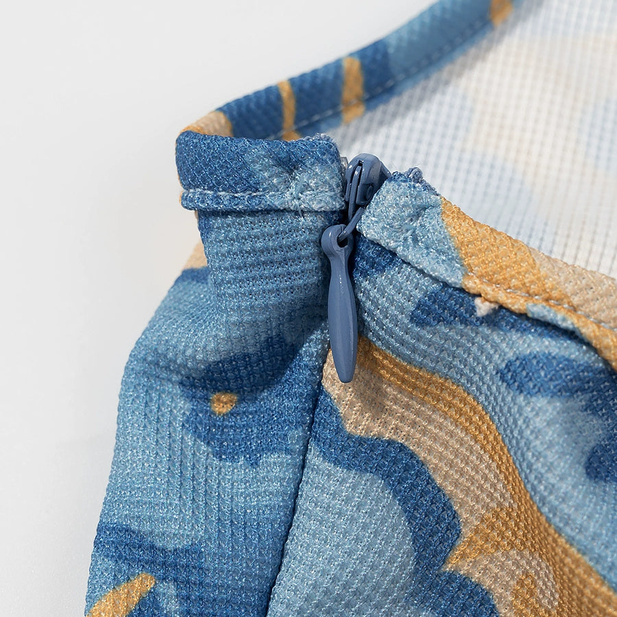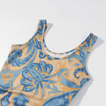Robe sans manches à franges imprimée avec empiècements