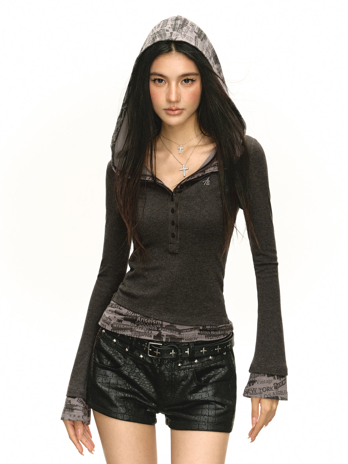 Haut à col roulé ajusté à capuche rétro à manches longues