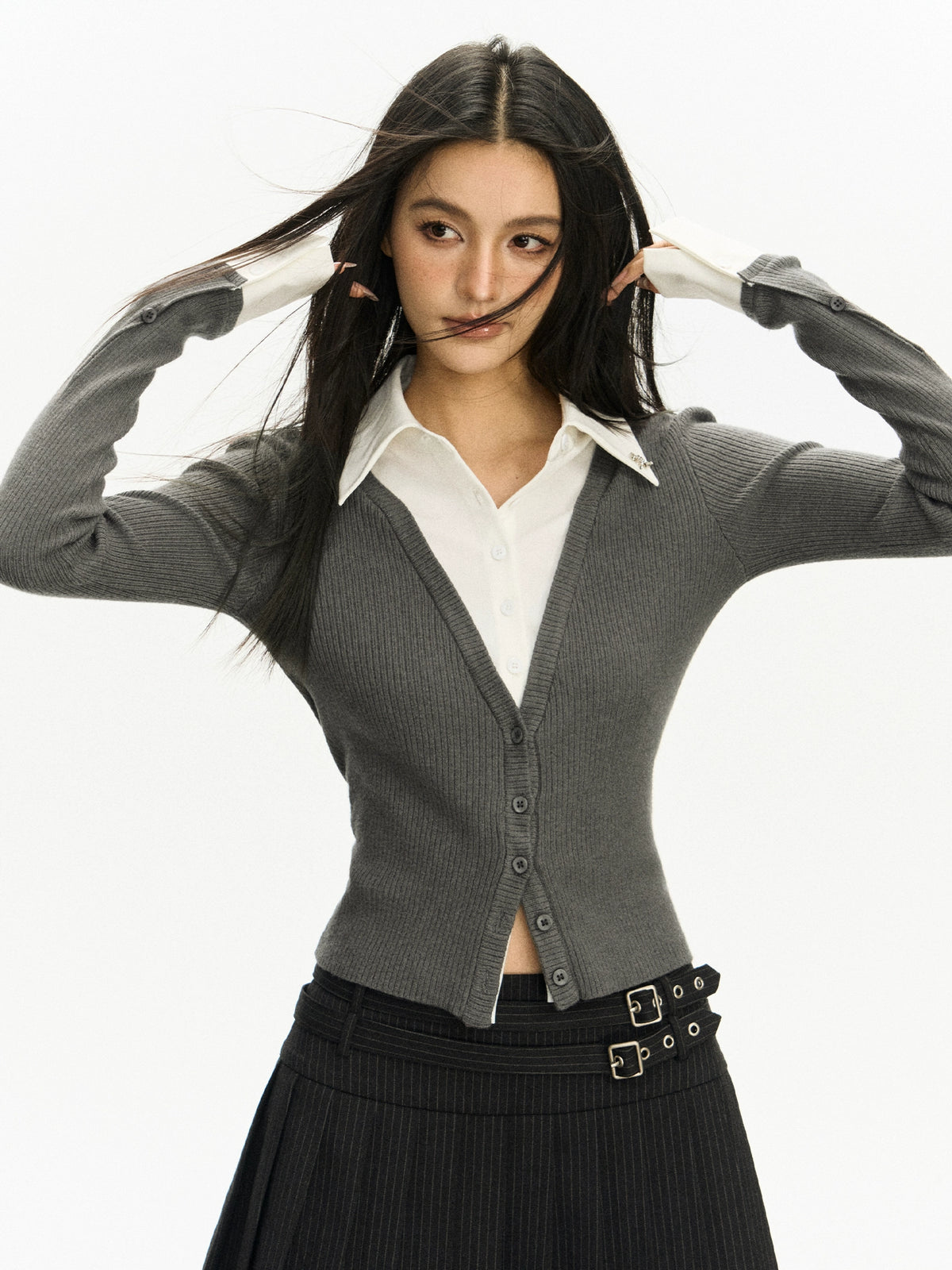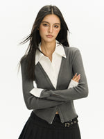 Ensemble de cardigan tricot à col de chemise en deux pièces