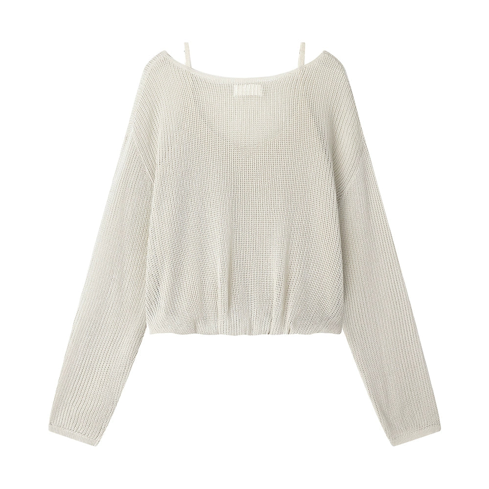 Haut à manches longues en tricot ajouré en deux pièces