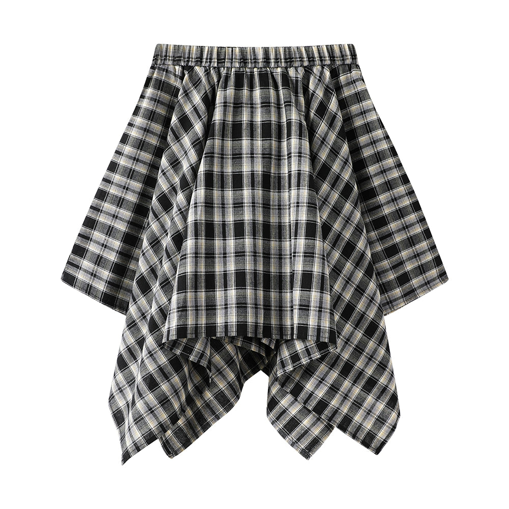 Jupe Chemise Asymétrique à Carreaux Design Rétro