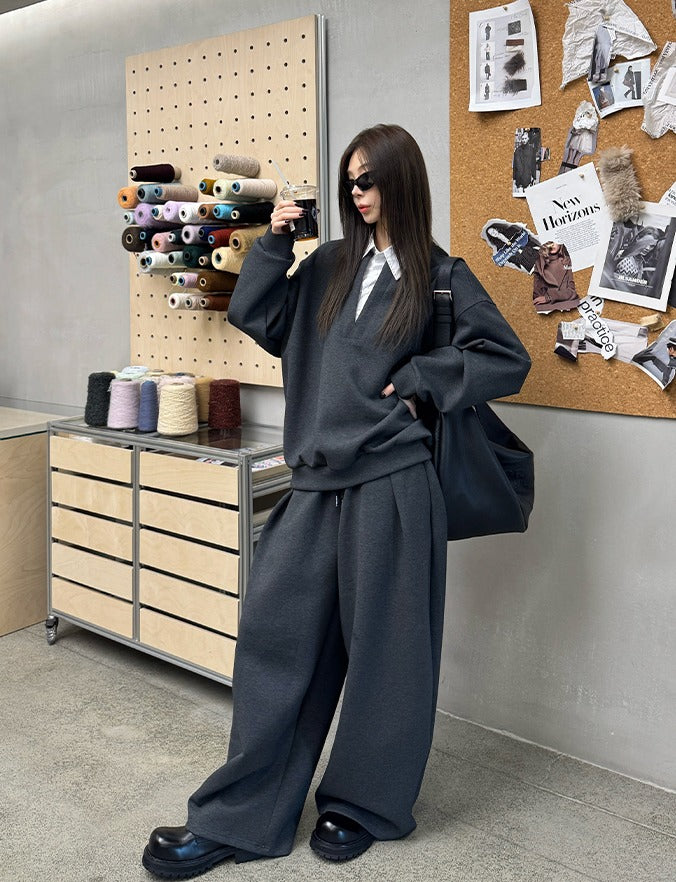 Sweatshirt et Pantalon à Col V Lâche