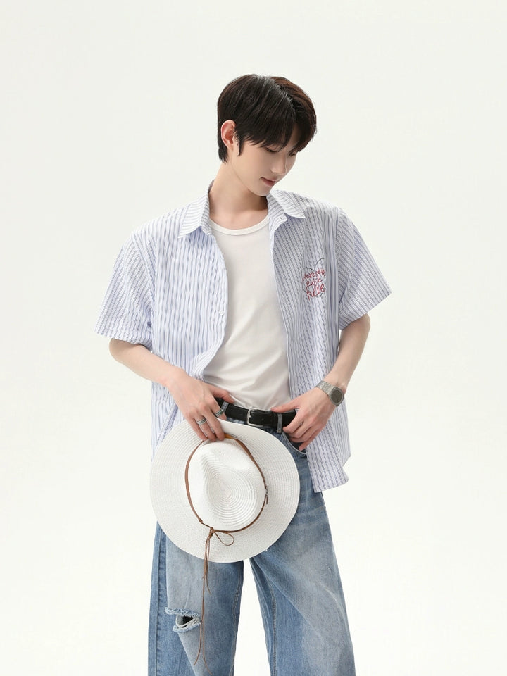 • Chemise à rayures douce et confortable avec impression de lettres.