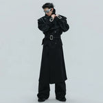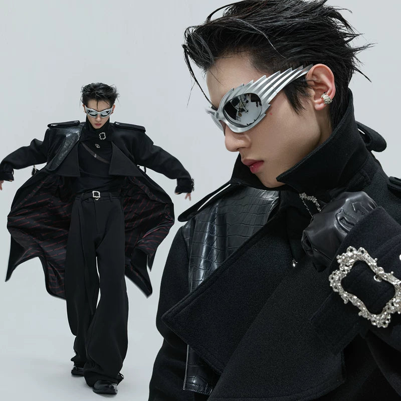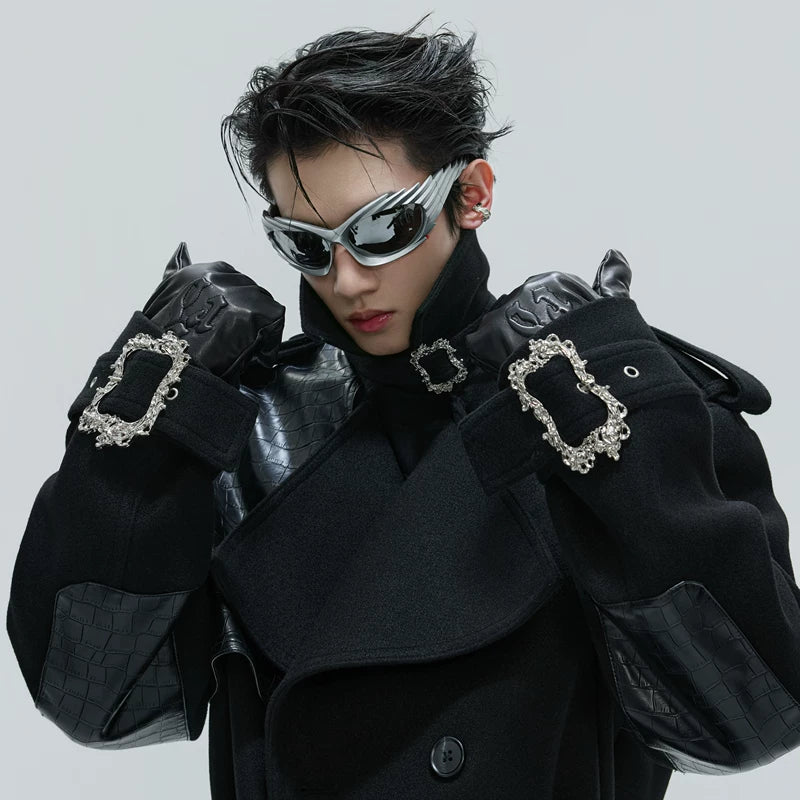 Crocodile-Patterned Wool Long Trench Coat