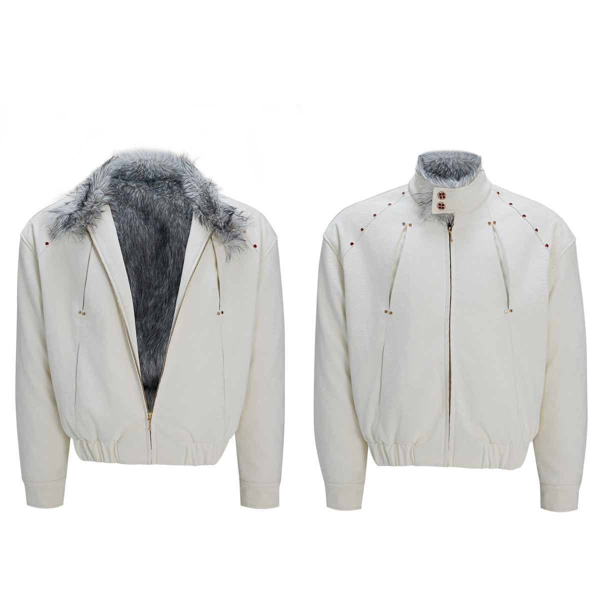 Fur Trim Leather Winter Coat