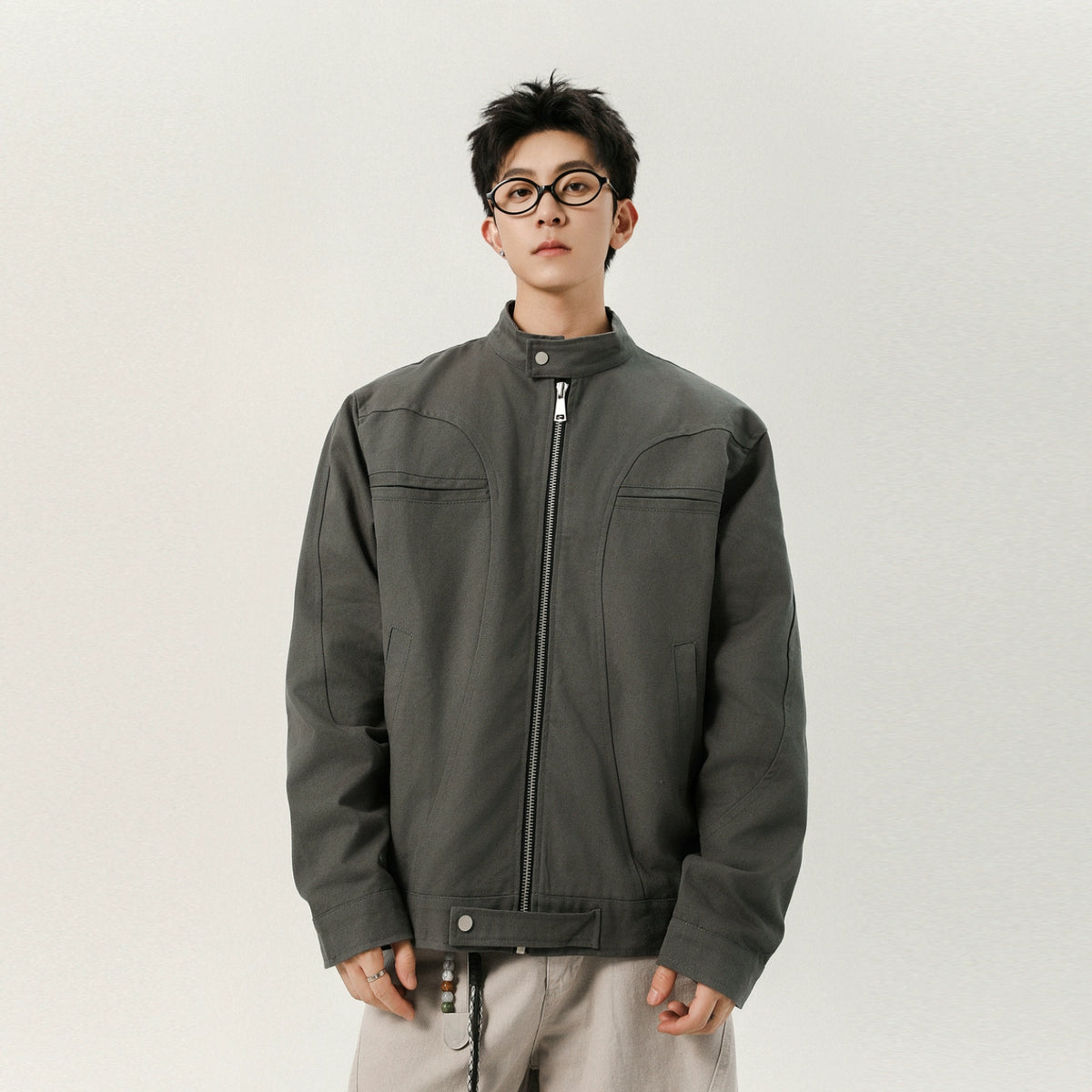 Veste décontractée déconstruite à col montant rétro