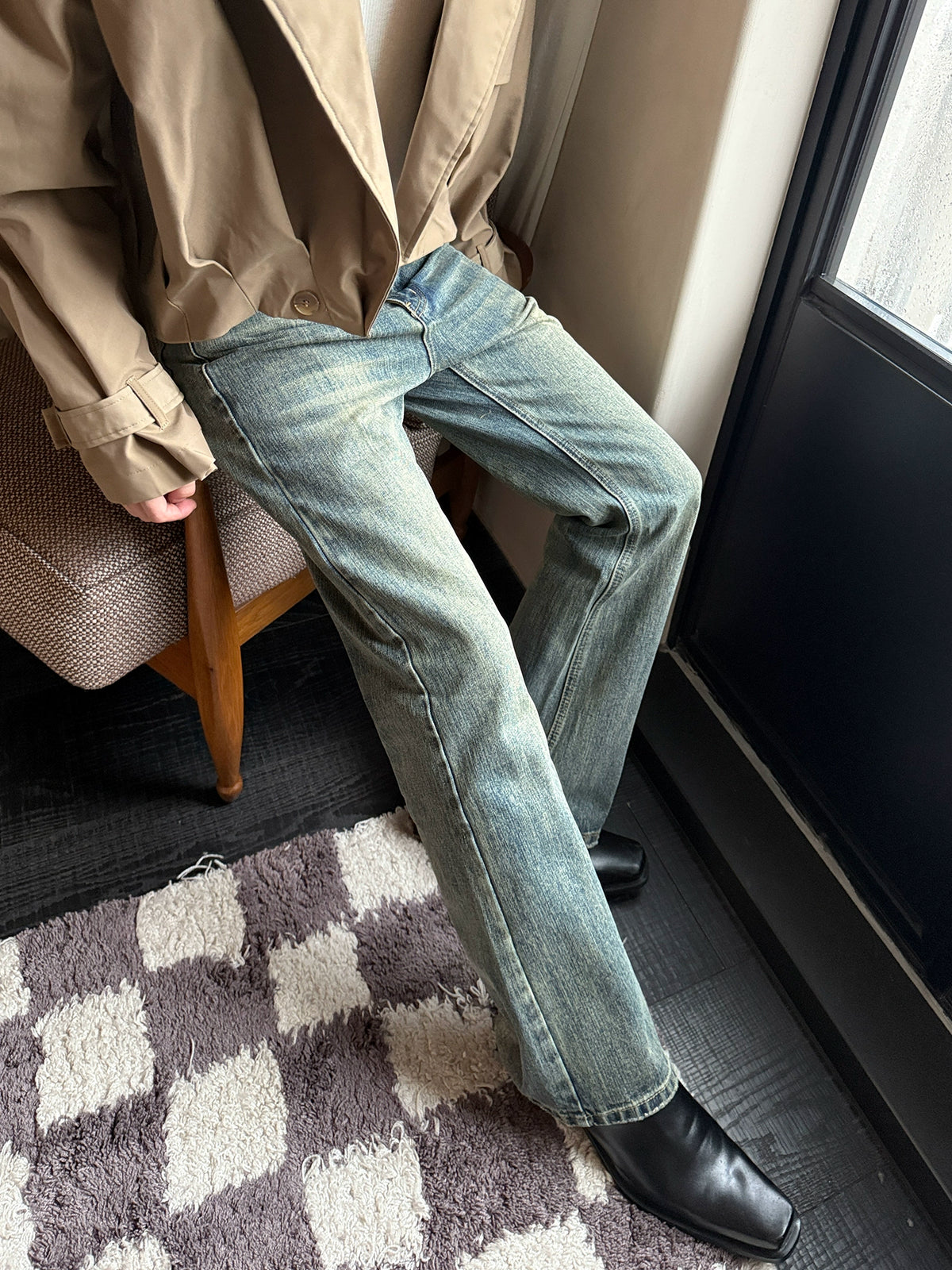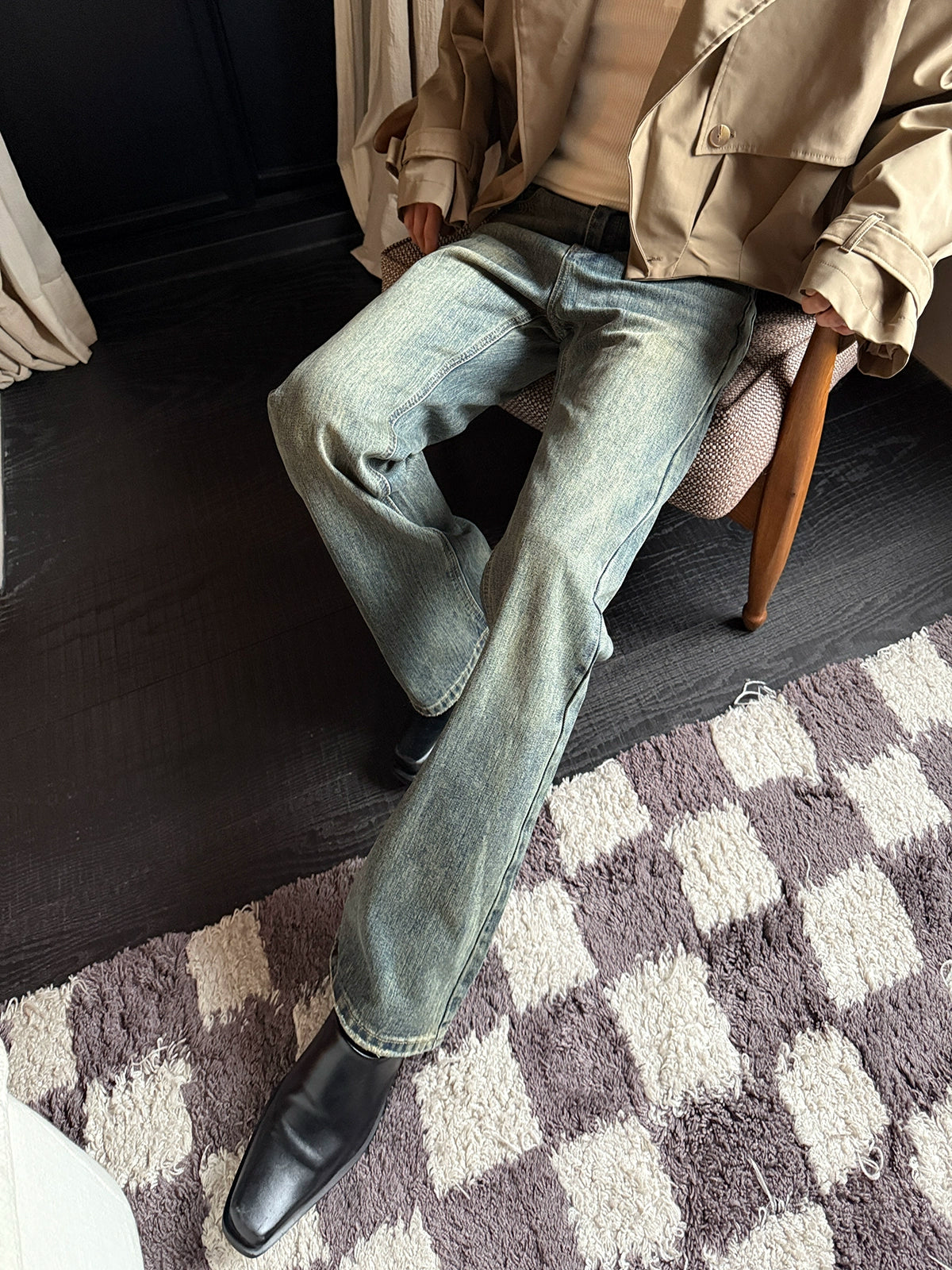 Pantalons évasés slim droits rétro déchirés