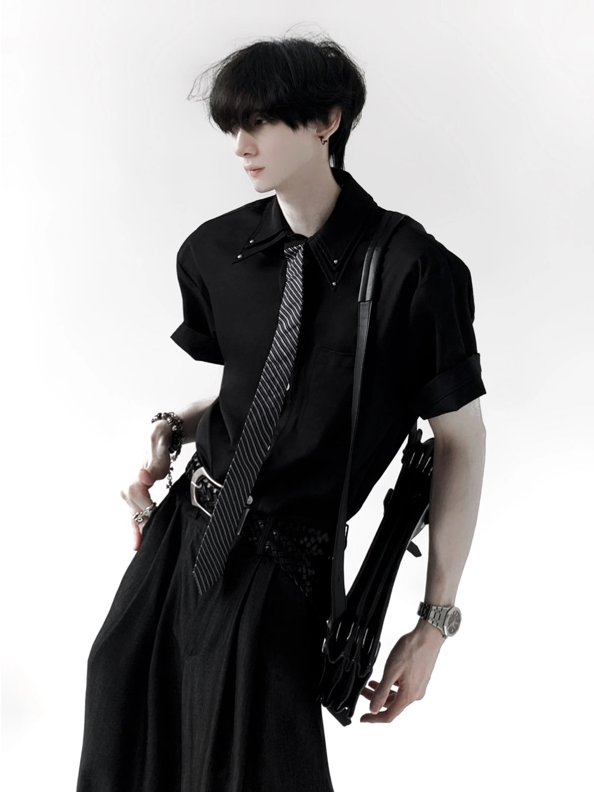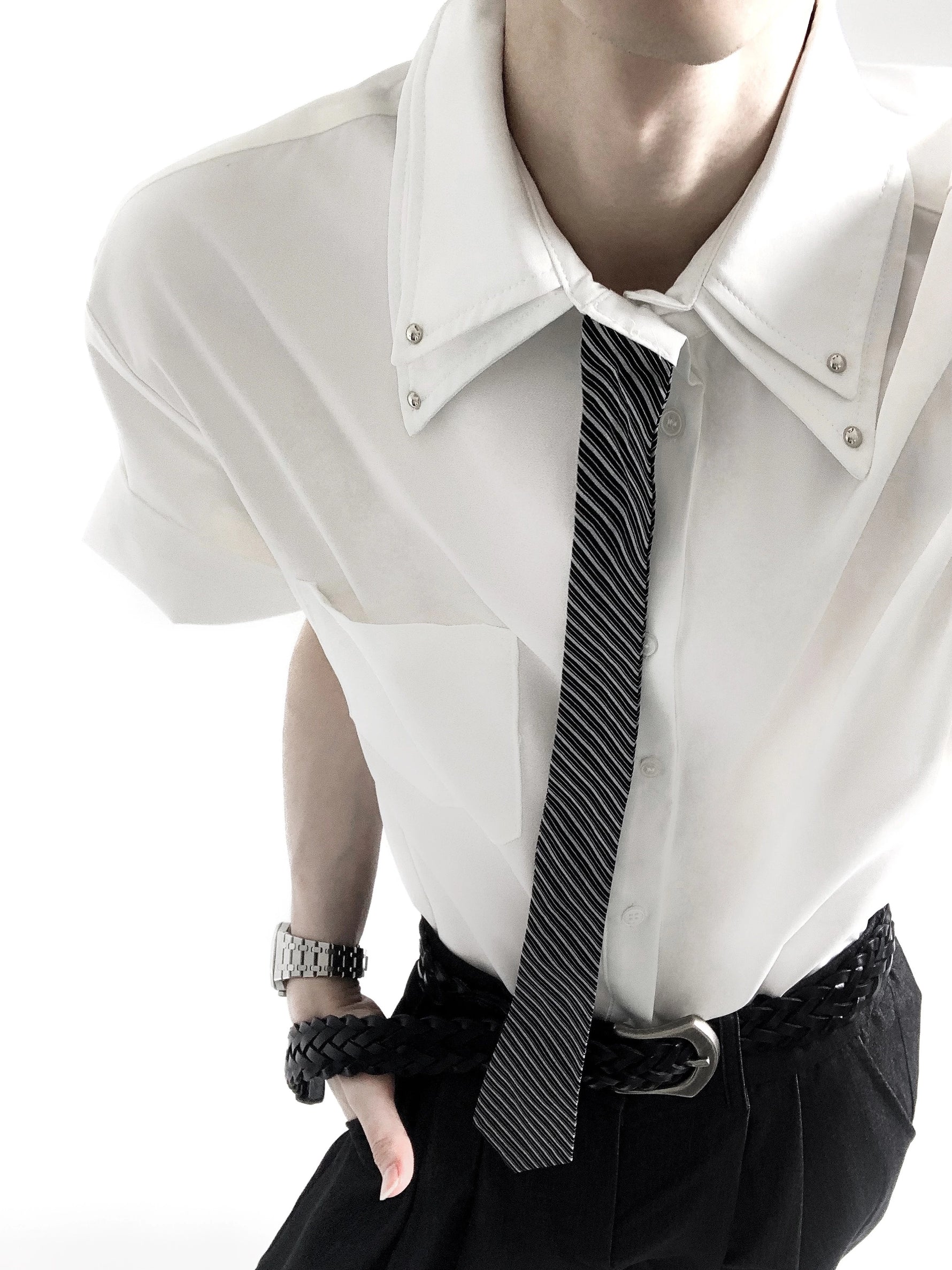 Chemise à col double couche à manches courtes