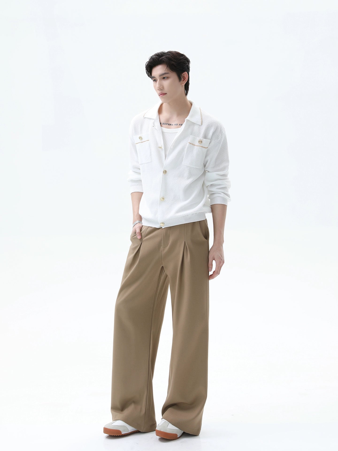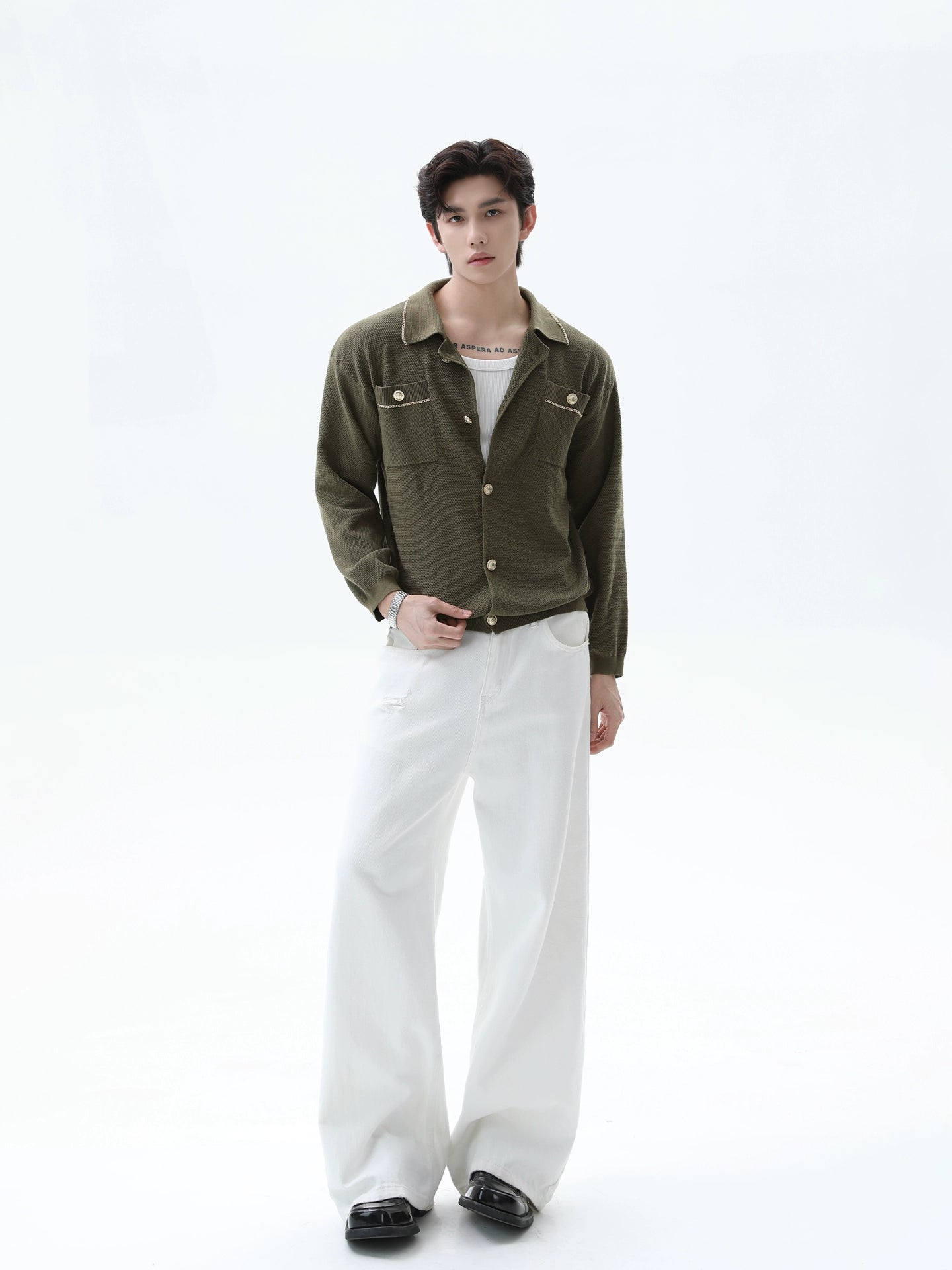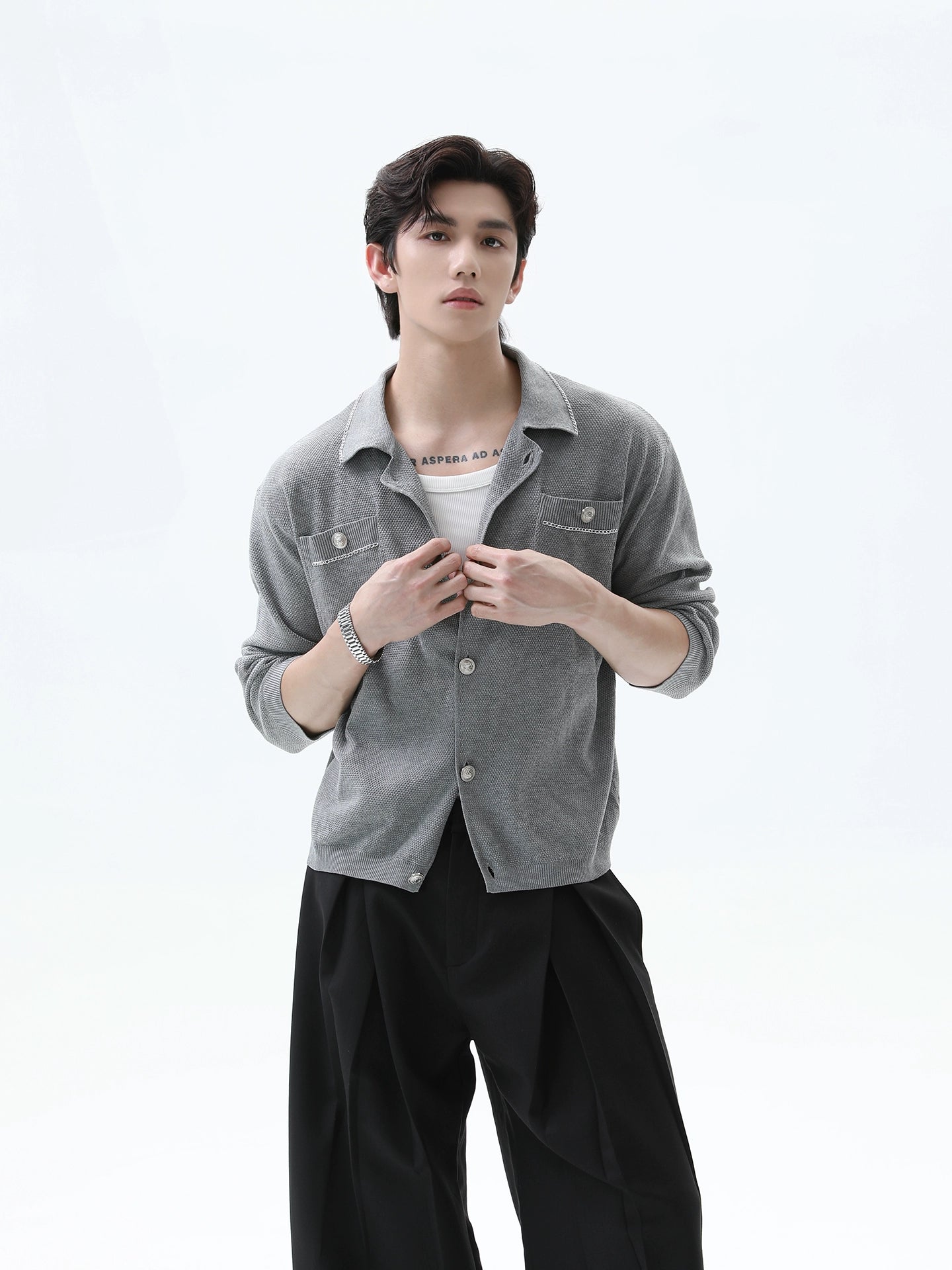 Cardigan à boutons tricoté avec col rétro