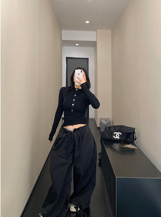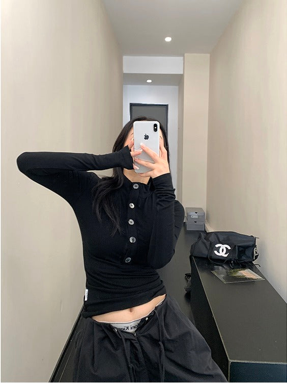 - Design : coupe modifiant le corps, style court, patte simple avec design de bouton
