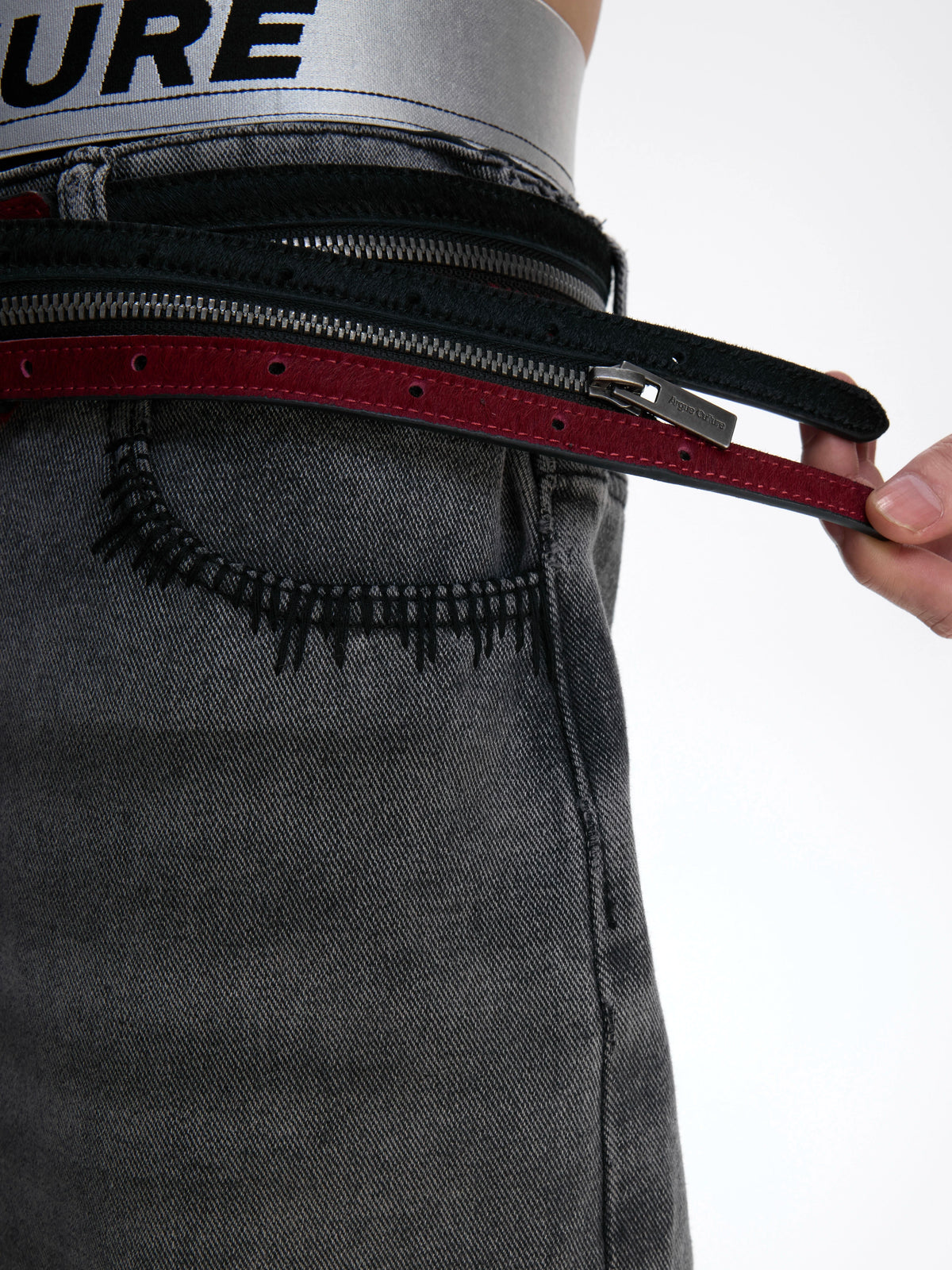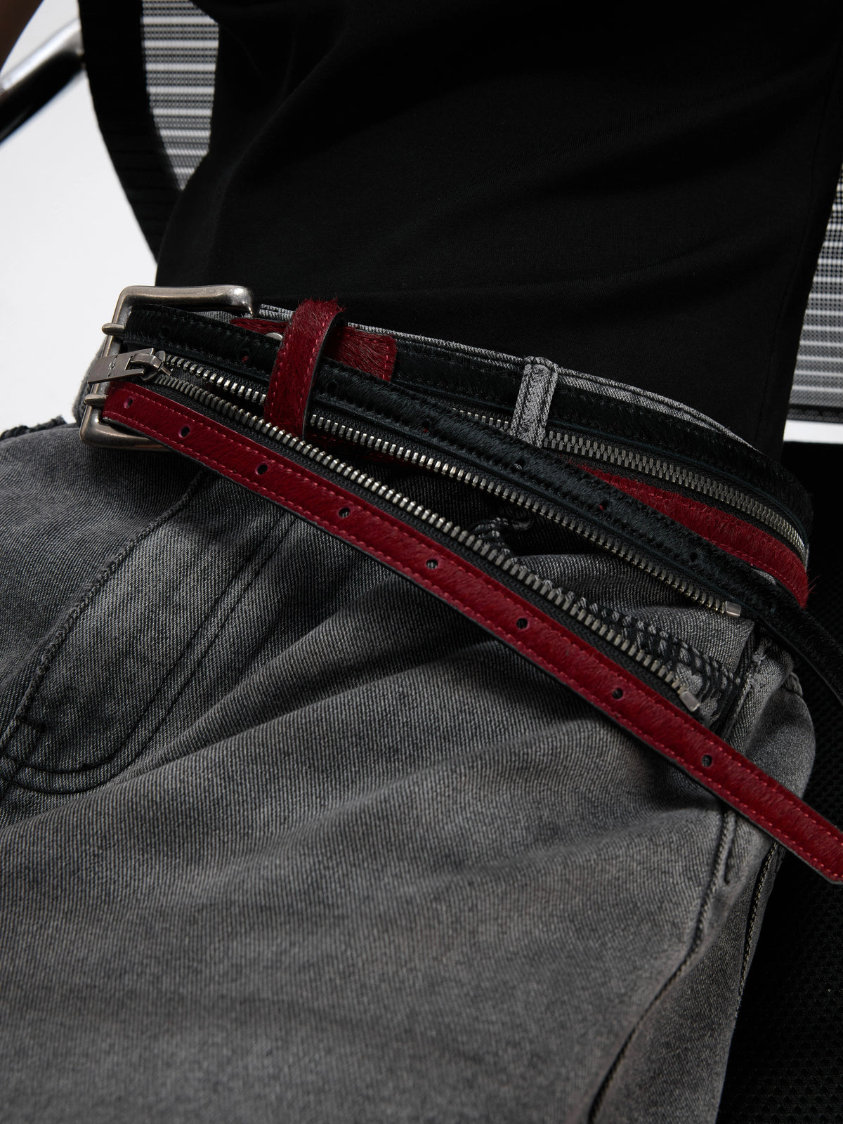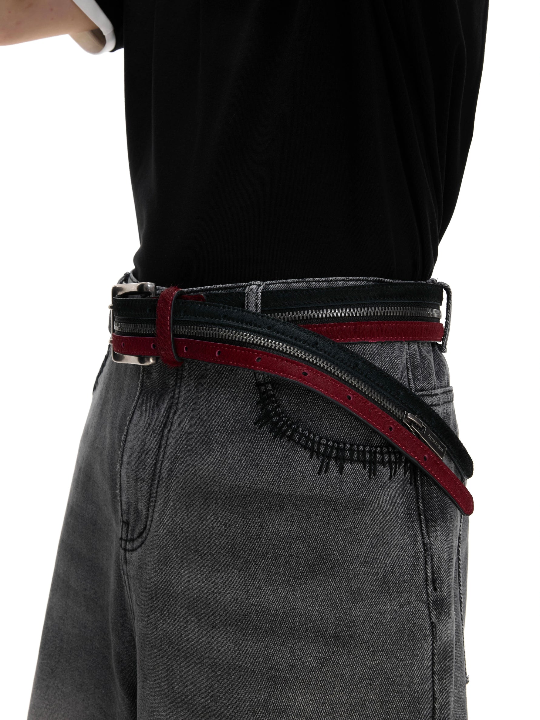 Pantalons en cuir avec ceinture à double fermeture éclair en fourrure