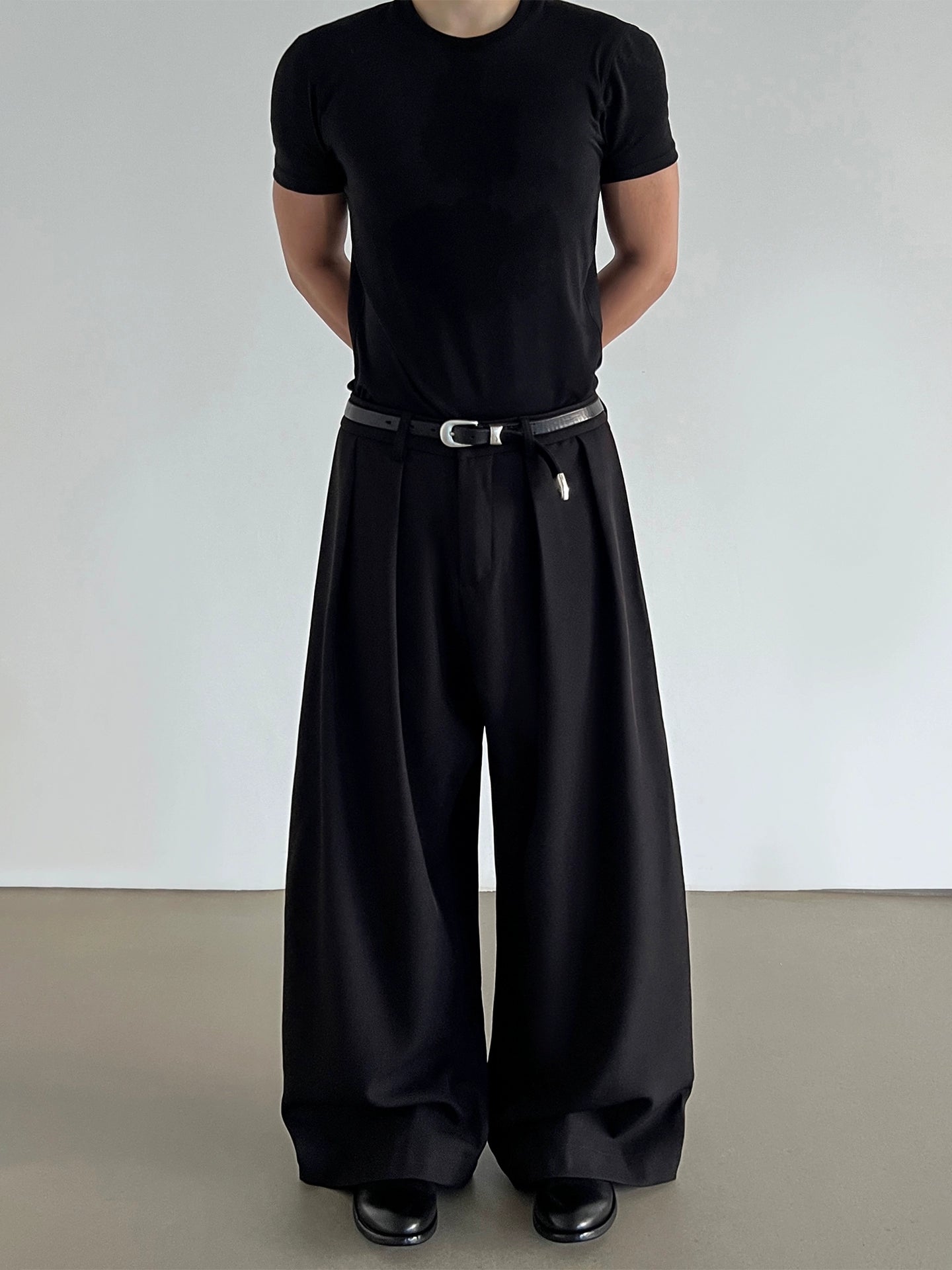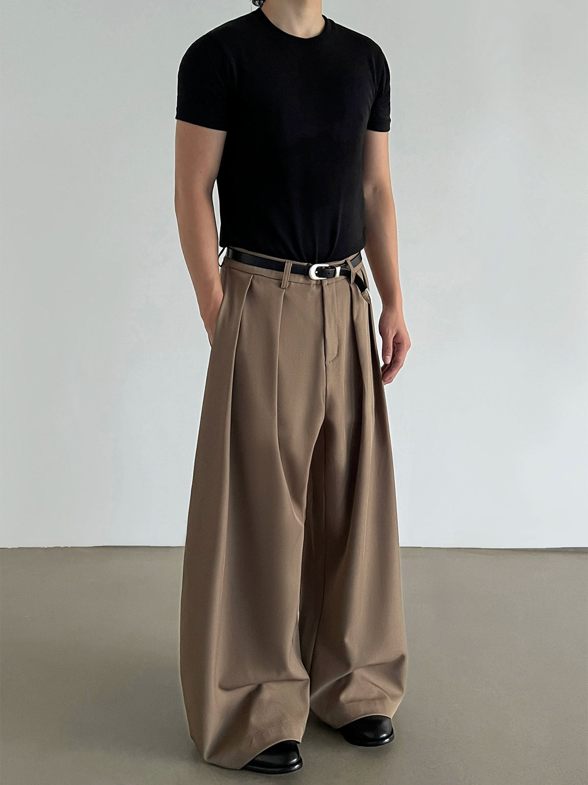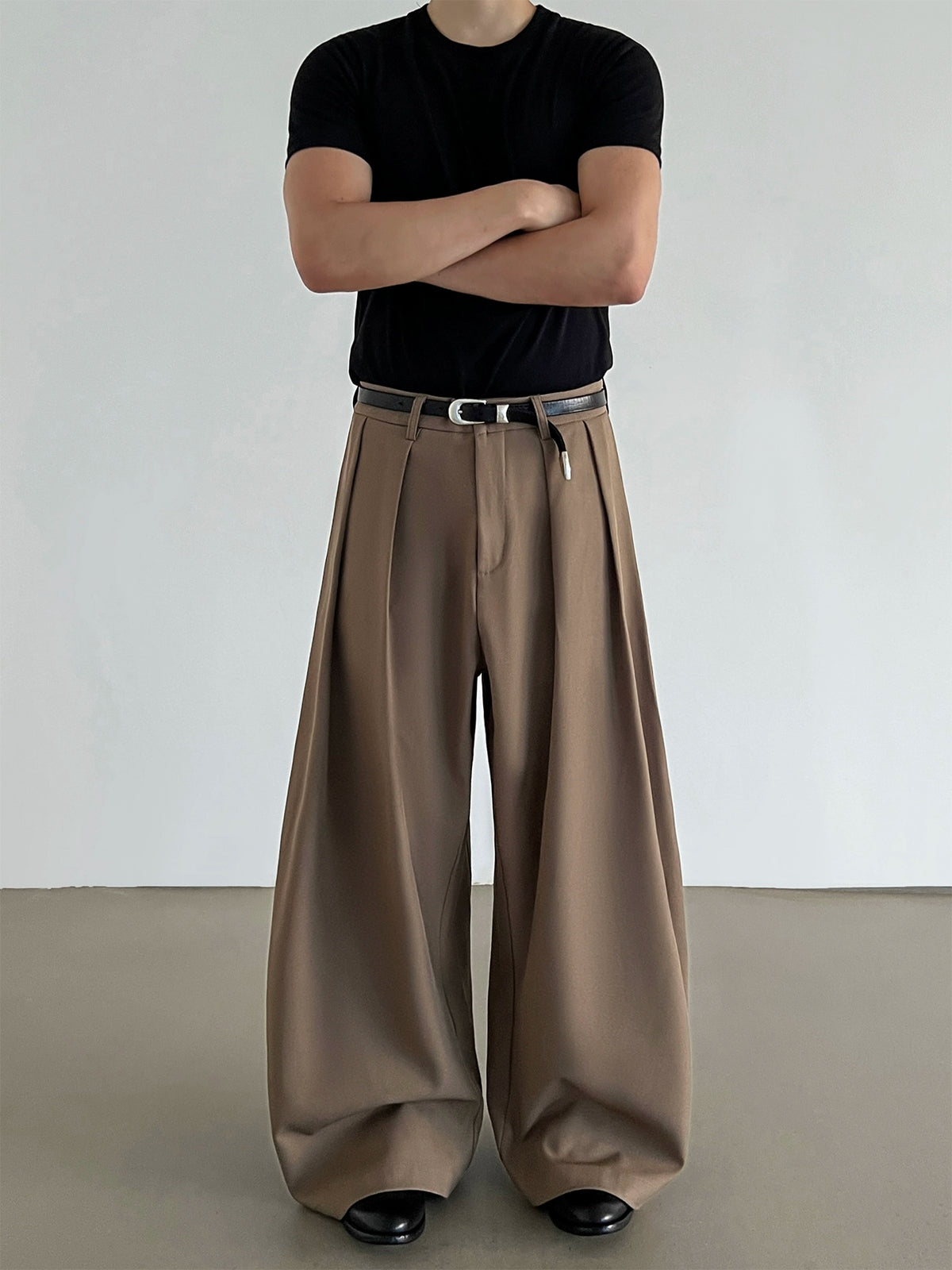 Pantalons décontractés évasés à taille plissée
