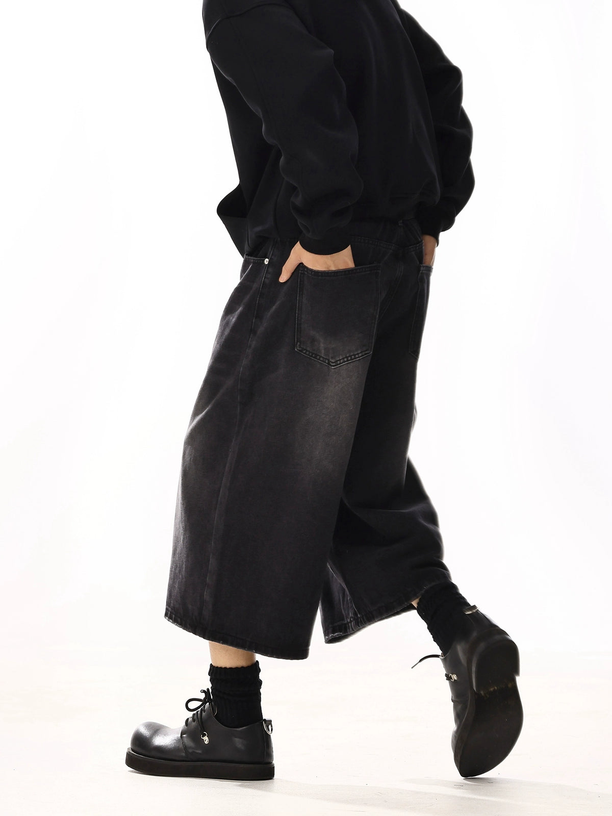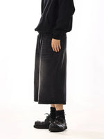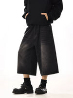 Loose Fit Washed Denim Wide Leg Shorts