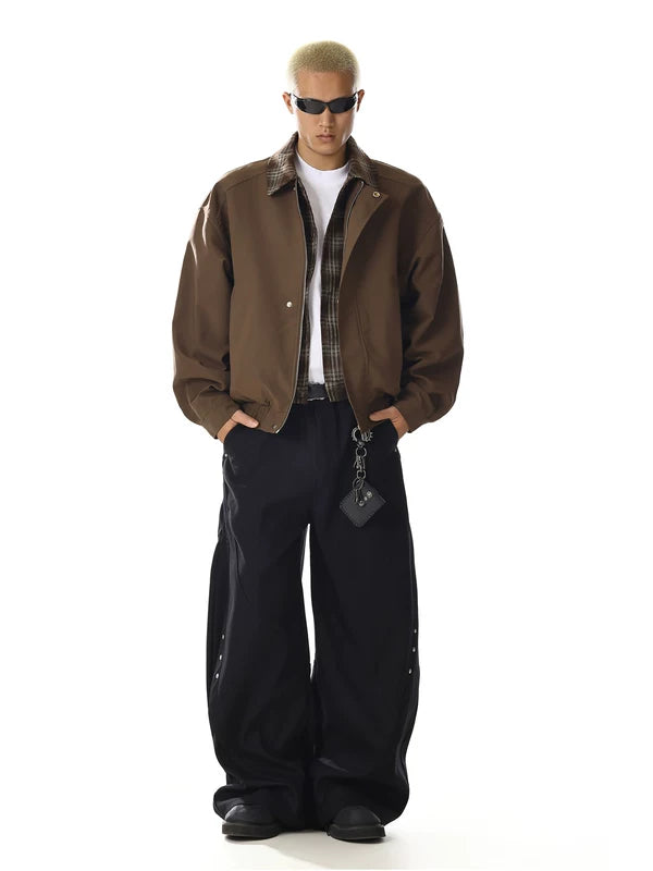 Veste loose à deux pièces en faux tissu écossais avec revers