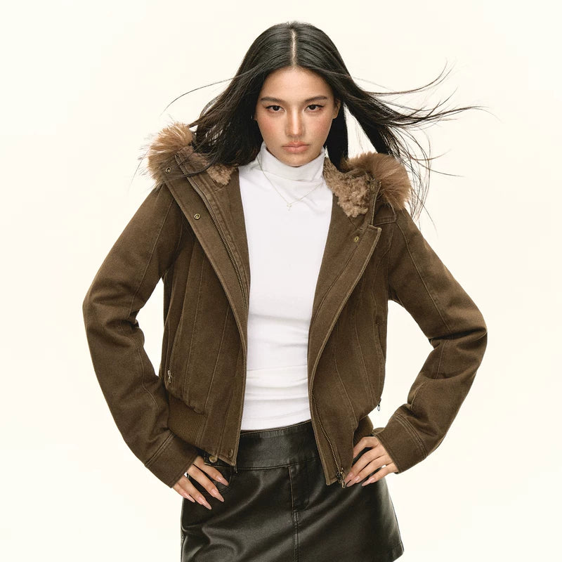 • Remplissage : 100% polyester (hors bord-côte et col en fourrure)