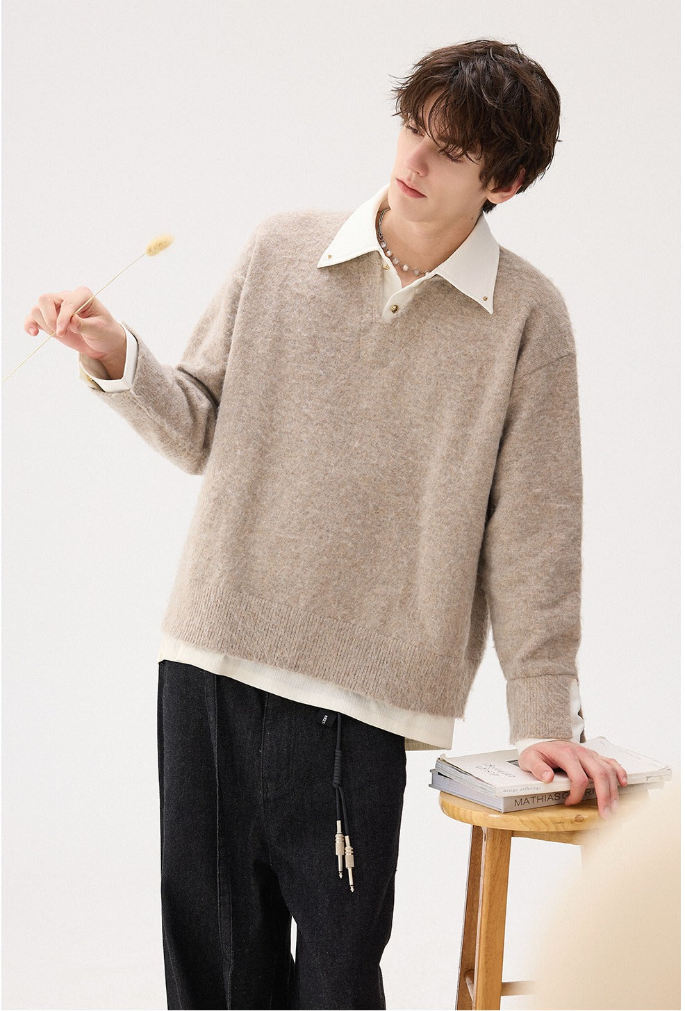 - Tissu en laine brossée avec une texture douce et décontractée