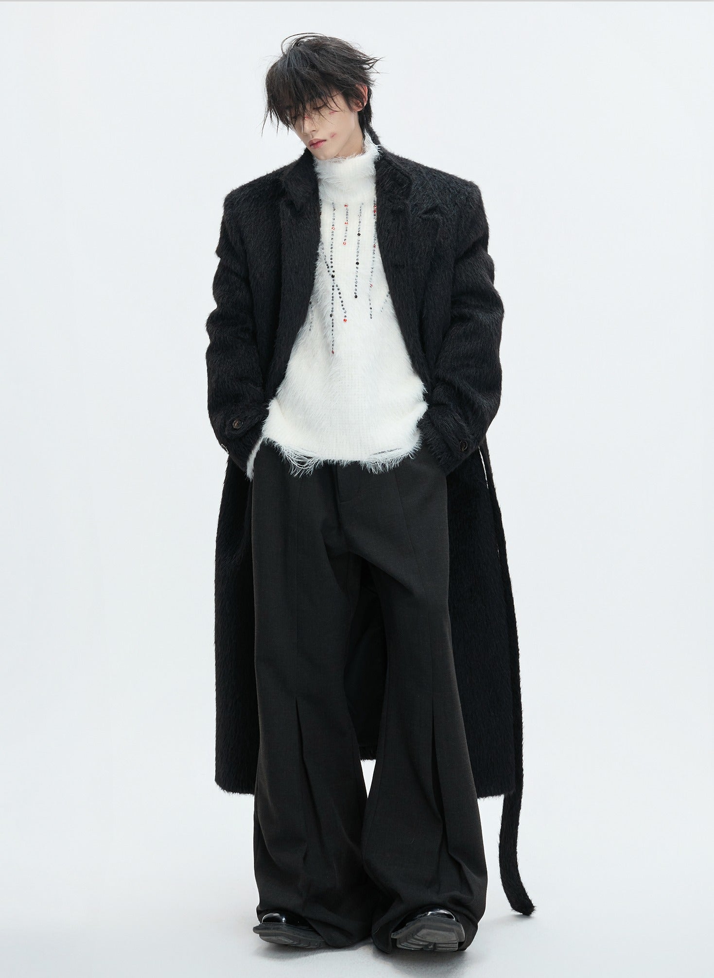 - La silhouette classique du pantalon évasé se rétrécit naturellement de la cuisse à l'ourlet fendu, avec un effet de balancement lors de la marche.