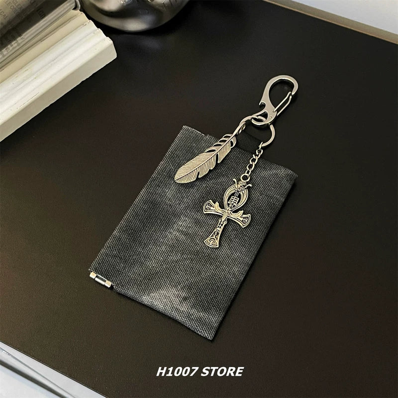 Porte-monnaie en denim avec chaîne pour pantalon et pochette à clés