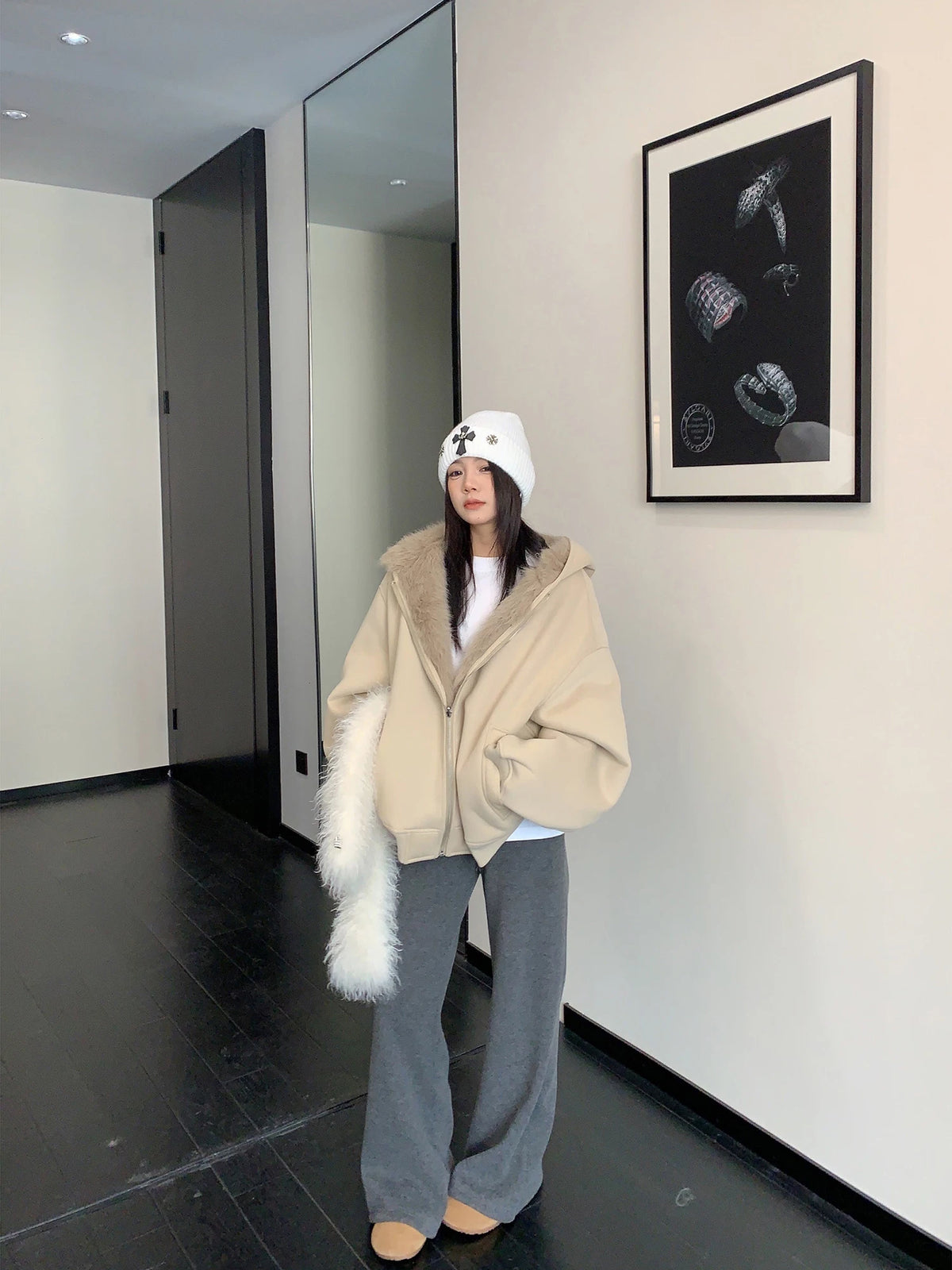 - Le côté en fourrure peut perdre une petite quantité de fibres lâches lorsqu'il est porté pour la première fois