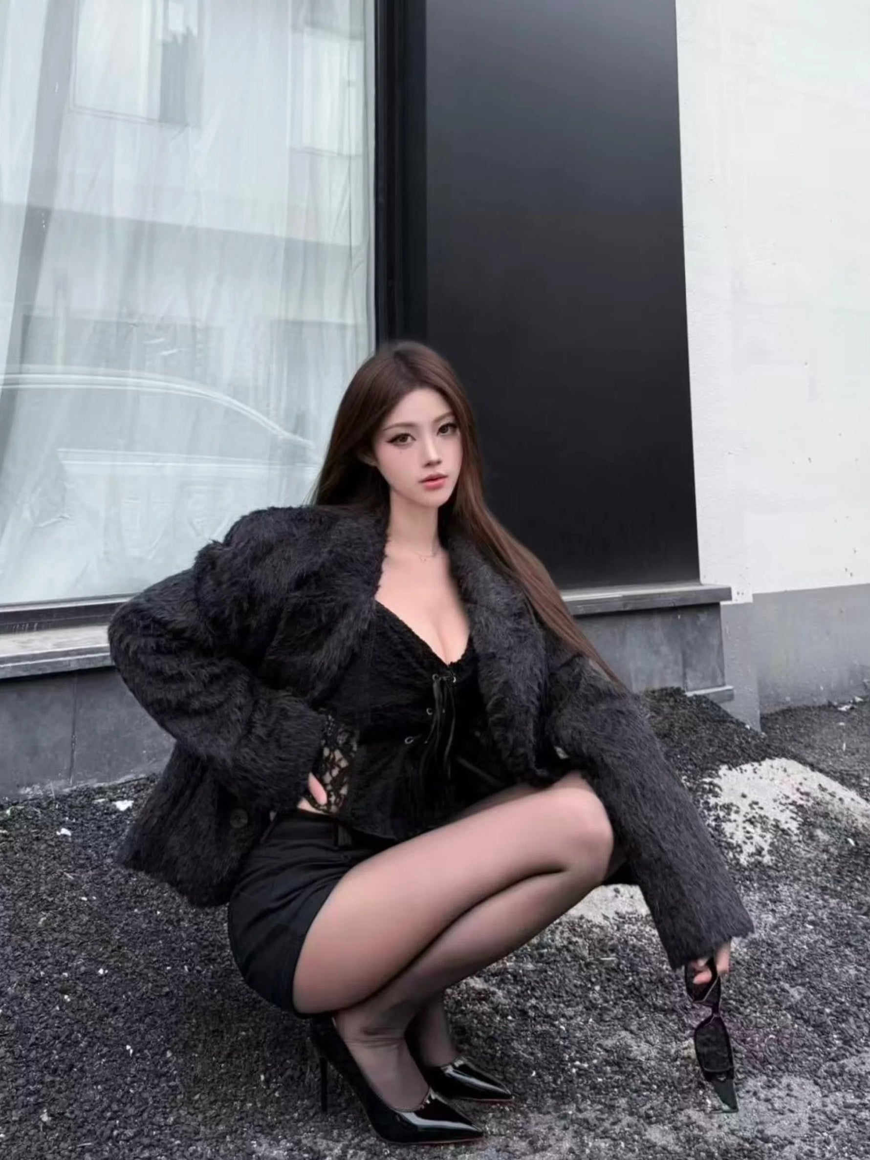 Manteau d'hiver court en fausse fourrure de vison