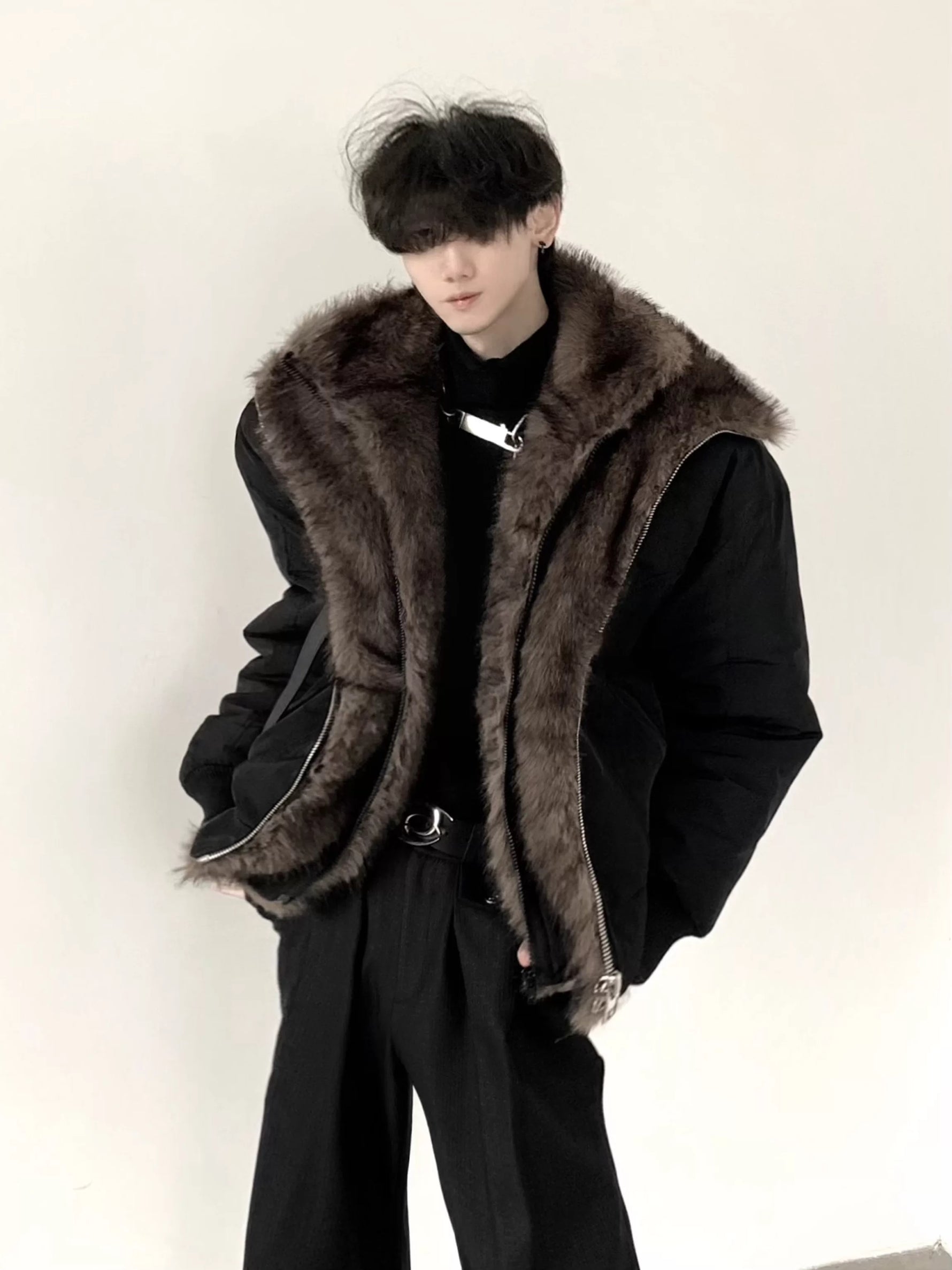 Veste d'hiver en duvet avec col en fausse fourrure