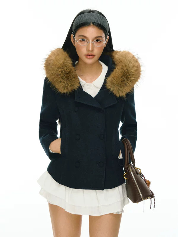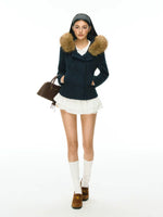 Veste en duvet à double boutonnage avec capuche en fausse fourrure