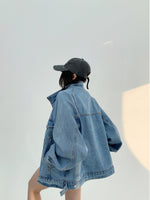 Distressed Zipper Denim Short Jacket