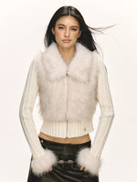 Slim Fit Fur Trimmed Sweater Jacket