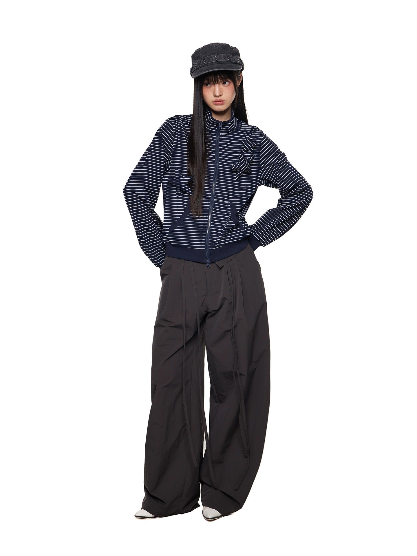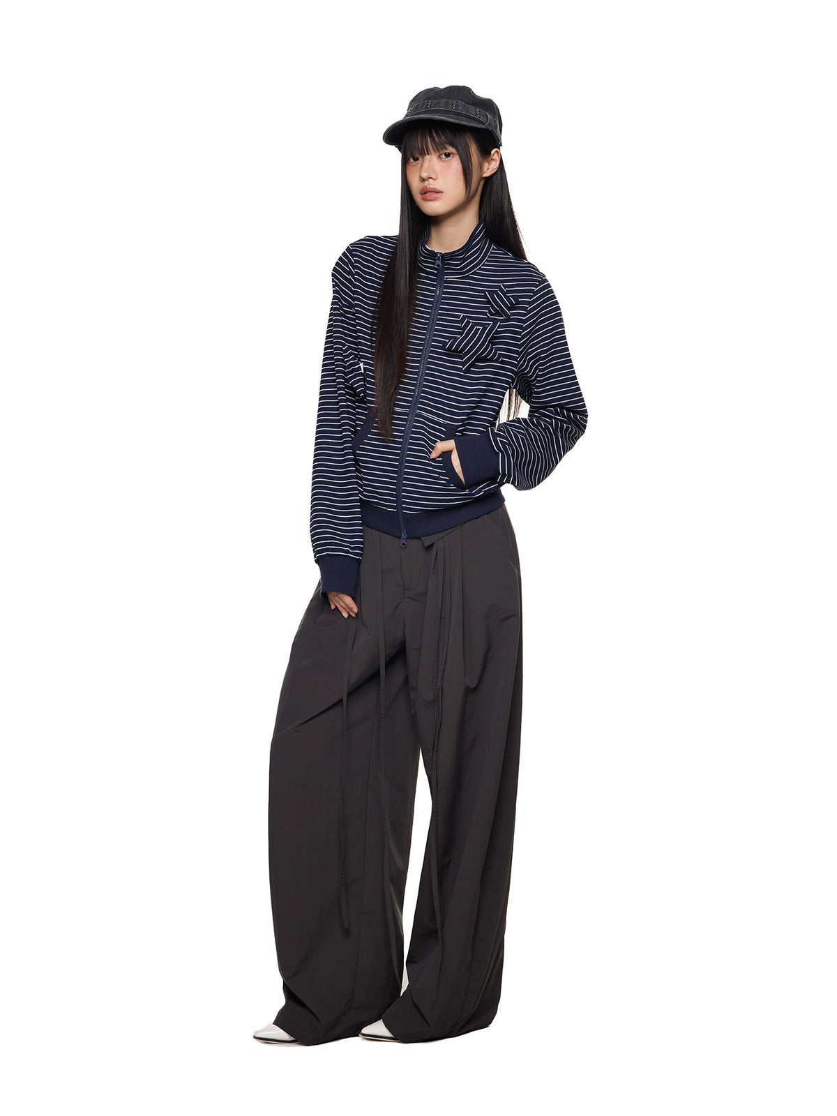 Veste rétro slim à col montant rayé