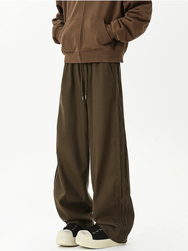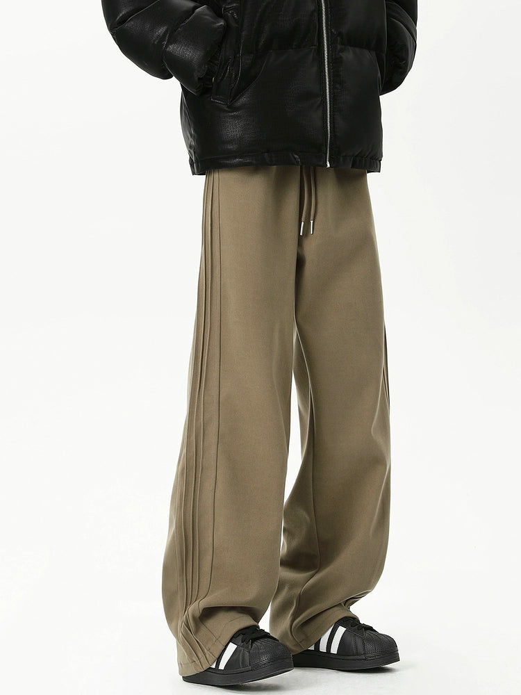 Pantalons droits décontractés à plis sur le côté