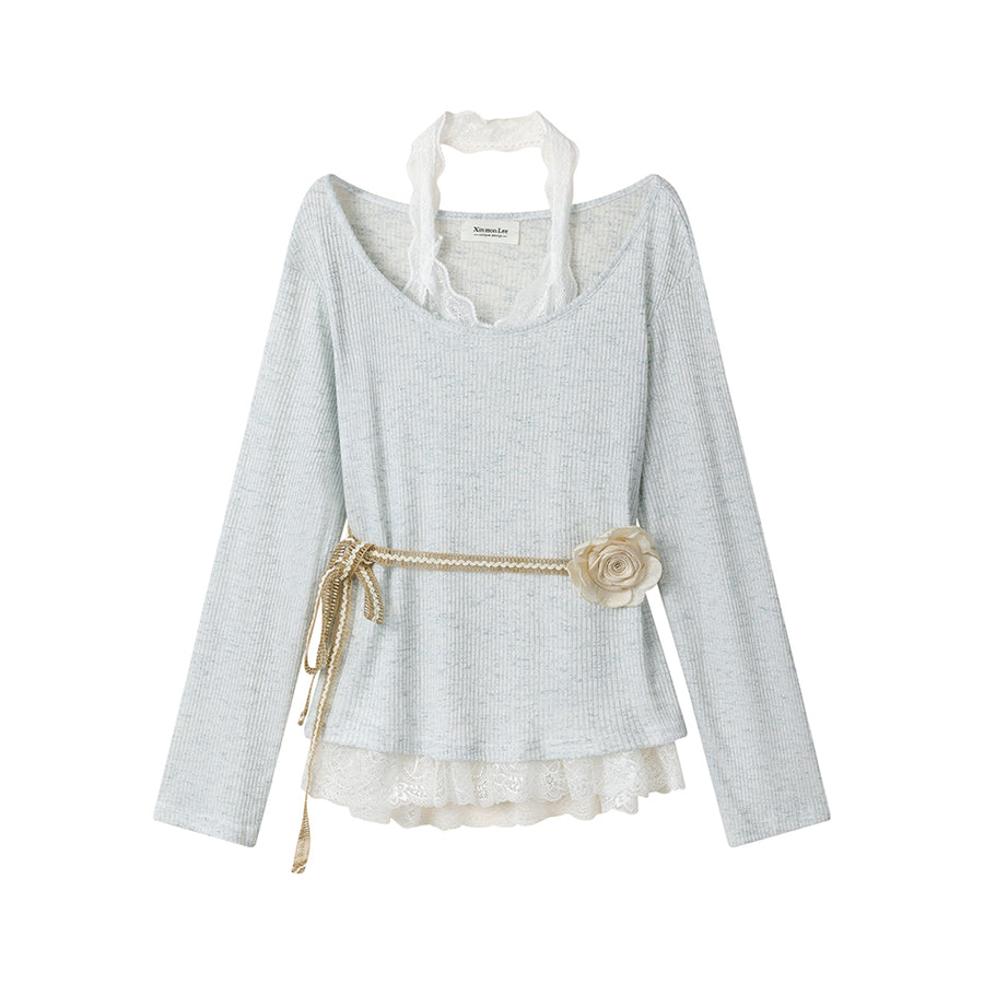 - קצה תחרה ותחרה עם דוגמאות פרחוניות על הצווארון וההיקף