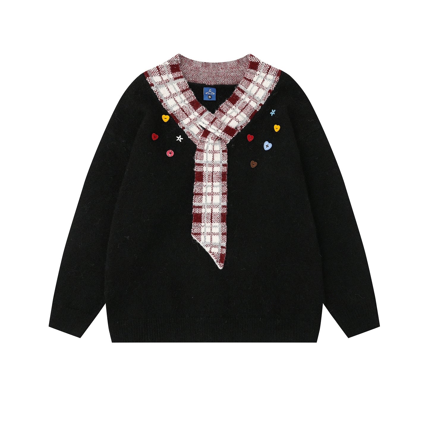 - סגנון: סוודר קלוע עם כתפיים משובצות